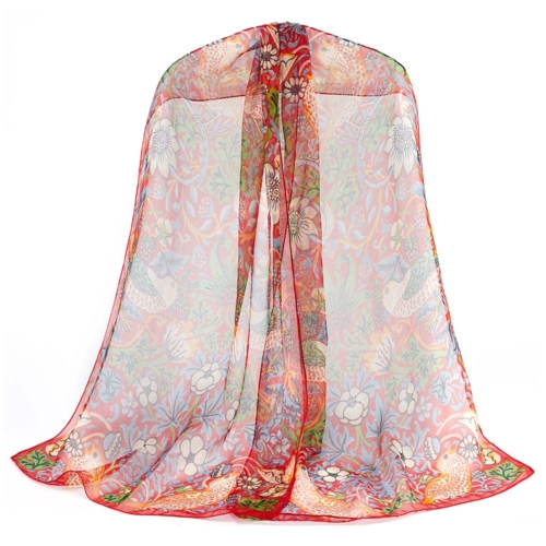 SC-SILK-WM-STRD | 100% Pure Silk William Morris Strawberry Thief Red Art Scarf