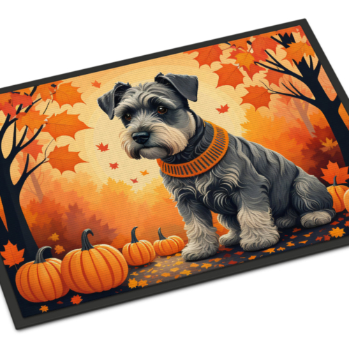 Doormat featuring breed specific Schnauzer artwork. Welcome your guests in style with our Artwork Door Mat, designed to withstand almost any weather condition. This mat, measuring approximately 24 by 36 inches, is held together by durable black binding tape. Its top layer, composed of polyester felt, is dyed with the eye-catching image you see on the mat. A few layers below provide the mat with stability, while its rubber bottom is stamped to help prevent slipping and ensures safety. Our mat works wonderfully as both an indoor or outdoor door mat. For cleaning, simply hose it off with water or use a power washer – no need for any cleaner that produces suds. Avoid scrubbing with a brush, instead, opt for the vacuum on floor setting. Designed manufactured and printed in the USA, this mat is a perfect addition to your porch, outdoor kitchen, entryway, or any indoor space. Its unique design makes it a charming decorative rug that greets your guests and adds a stylish touch to your home decor.