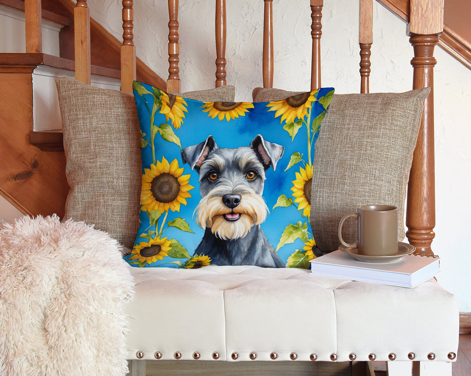 Throw Pillow featuring breed specific Schnauzer artwork. Add a touch of vibrancy and comfort to your outdoor seating with Caroline’s Treasures Fabric Decorative Pillow. Measuring approximately 14 inches by 14 inches, this outdoor pillow is crafted to elevate the appeal of your patio furniture, infusing it with vivid color and artistic flair. The pillow includes a 100% Polyester Fabric sham filled with a quality pillow form to provide superior comfort. Innovatively made from our brand new material, specifically woven for its water resistance, this pillow is designed for durability. The soft canvas fabric offers versatility in use, fit for your indoor couch or your outdoor patio, porch, or veranda. The fabric is dyed with colorfast dyes built for resilience against weather conditions, ensuring the pillow retains its beauty over time. Constructed by sewing three fabric pieces to create a sham, the polyester insert is then nestled inside to form the pillow, resulting in an overstuffed pillow that maintains its shape. Both the sham and the pillow insert are proudly made in the United States. As the pillows are handcrafted, there may be minor variations in size, further enhancing their unique charm. Experience comfort in style with Caroline’s Treasures Fabric Decorative Pillow.
