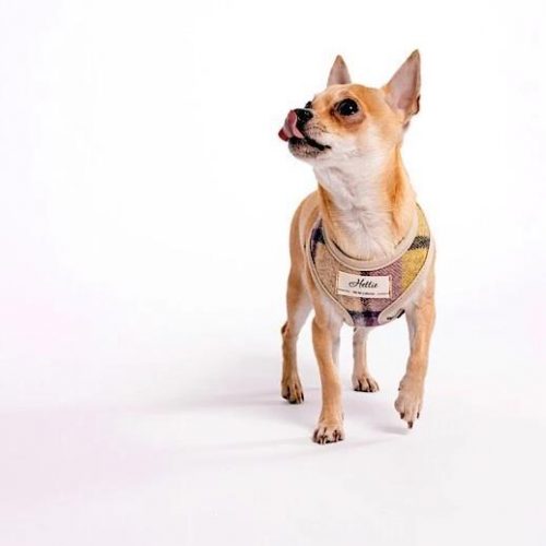 Whether it’s a stroll through the park or a day out shopping, walk your dog in style with our Hettie Scooby dog harness. This harness has an adjustable waist strap to ensure a good fit, made from 100% wool outer fabric and 100% cotton spot lining. Available in a variety of fabrics, why not coordinate your pampered pooch with your outfit! You could even mix and match with our Jasper dog coat range.