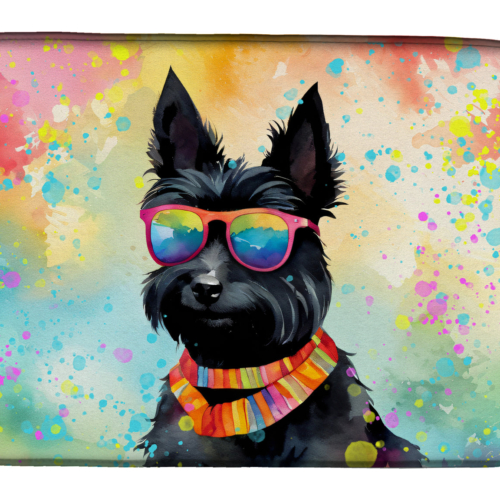 Dish Drying Mat featuring breed specific Scottish Terrier artwork. Say goodbye to messy countertops and soggy dish towels with our innovative dish drying mat. Our high-quality dish drying pad is designed to keep your countertops dry while offering a stylish and efficient solution. Whether you’re air drying dishes, glasses, stemware, silverware, pots, pans, bottles, or even fruits and vegetables, our dish mat is the perfect choice. The 14 inches x 22 inches size fits most counters and dish drying racks, and the non-slip design ensures stability. Made with water-absorbent polyester and a polyurethane foam insert, our dish drying mat is not only functional but also durable. It’s machine washable and printed in the USA for long-lasting use. The beautiful artwork adds flair to your kitchen decor, making it a perfect housewarming gift or present for any occasion. Upgrade your kitchen experience with our absorbent and versatile dish drying mat.
