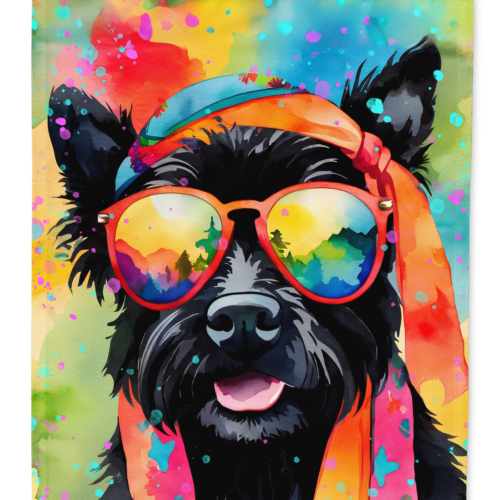 House Flag featuring breed specific Scottish Terrier artwork. Presenting our Heavy Duty Polyester House Size Decorative Sleeve Pole Flag, a vibrant addition to enhance the aesthetic appeal of your home. This large decorative flag, measuring approximately 28 x 40 inches, offers ample coverage and visibility. Each flag is meticulously sewn and made individually, ensuring a unique piece that may slightly vary in size. It’s a sleeve pole flag, designed to fit a standard decorative flag pole effortlessly. Please note that the flag pole and bracket are not included and should be purchased separately. What sets our flag apart is its dual-sided print. The design is mirrored on both sides of the fabric, allowing for uniform visibility regardless of the angle. Printed in full color, our flag showcases vibrant hues that truly stand out. To ensure lasting vibrancy and durability, the dyes are heat-set into the fabric. This ensures your flag remains bright and captivating through various weather conditions. Elevate the look of your home with our Heavy Duty Polyester House Size Decorative Sleeve Pole Flag!