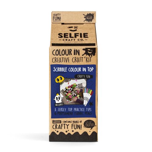 This beautifully packaged children’s colour in, creative kit includes; a long-sleeved round neck top, six fabric colour in pens and practice hints & tips, available for ages 3-12.