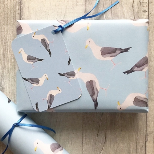 Seagull gift tag Each tag is made from 300gsm card which is Acid free and Lignin free, the size of the tag is 6.5cm x 10cm roughly (as its handmade), it is non coated so easy to write on. The ribbon is dependent on what I have available at the time, but will colour match the tag
