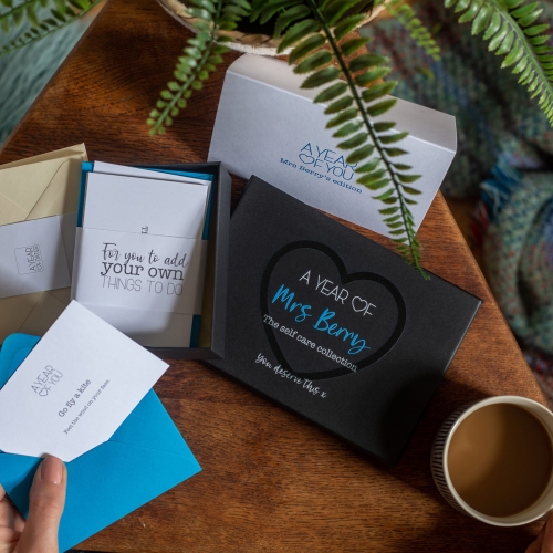 The box is printed with A Year of You on the lid and the coloured envelopes will match the print on the lid + cream for the second set to differentiate.