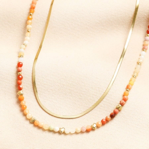 A stunning necklace with two separate layersMade of semi-precious stones and gold platingWith hexagon beads and a herringbone chainPerfect for retailers stocking statement and colourful jewelleryMade from: stainless steel, semi-precious stones