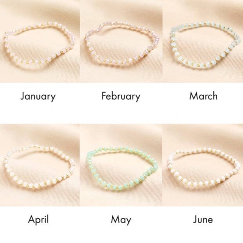 Vibrant blue beaded birthstone bracelet with shimmering faceted beads and gold dividers.Stretchable elastic ensures a comfortable and flexible all-day fit.