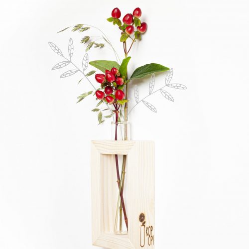 The glass tube is in a stylish holder, and is made from sustainable wood. Crafted with love by our carpenter.