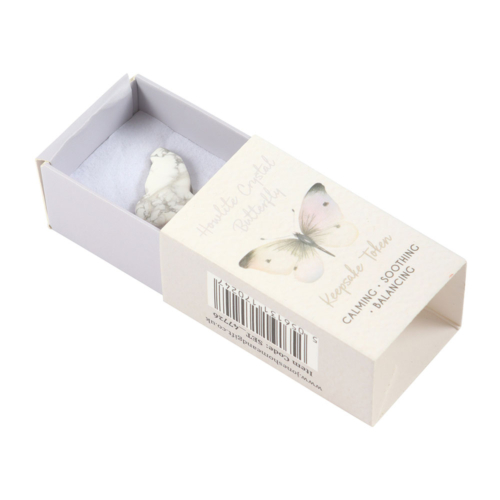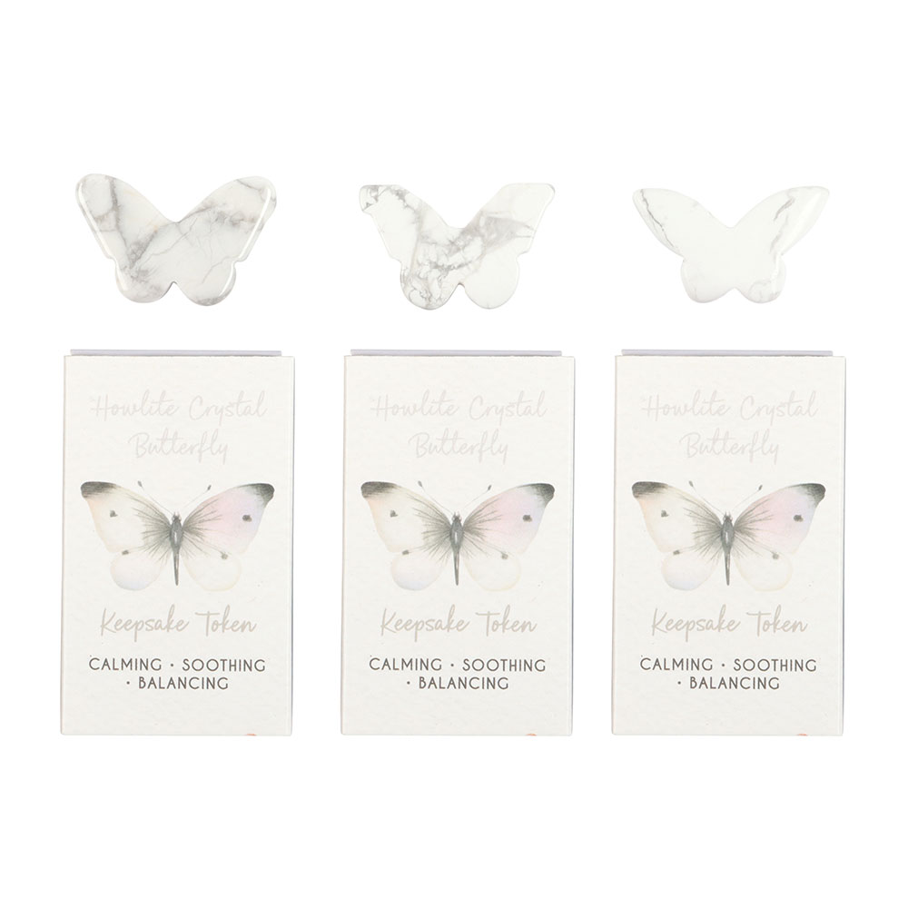 This set includes 12 howlite butterfly keepsake tokens, each presented in a tiny gift box featuring the delicate butterfly image from the White Butterfly collection. Known for its calming and balancing properties, howlite makes a thoughtful token to bring comfort and peace during times of remembrance. Supplied in a cardboard display unit for easy point-of-sale presentation. Designed by Something Different Wholesale and part of the White Butterfly collection of sentimental gifts and home decor.