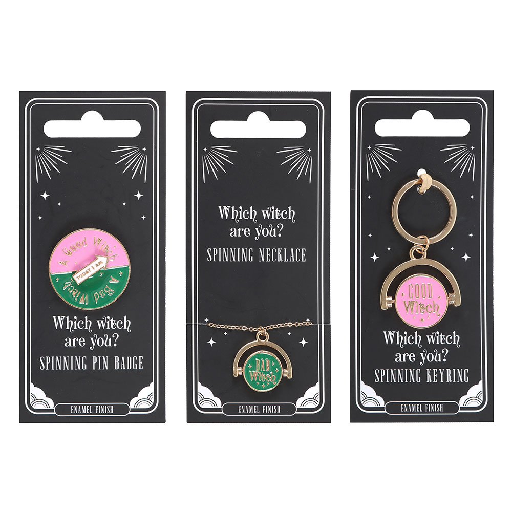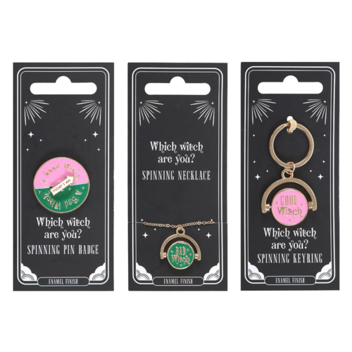 This eye-catching countertop display includes 18 enamel and alloy accessories—featuring a mix of spinning necklaces, pin badges, and keyrings—each playfully revealing ‘Which Witch Are You?’ with every spin. Presented in a branded cardboard display unit, it’s perfect for retailers looking to showcase the bold witchy charm of this standout range. Designed by Something Different Wholesale and part of the Good Witch, Bad Witch collection of bold witchy gifts and home décor.