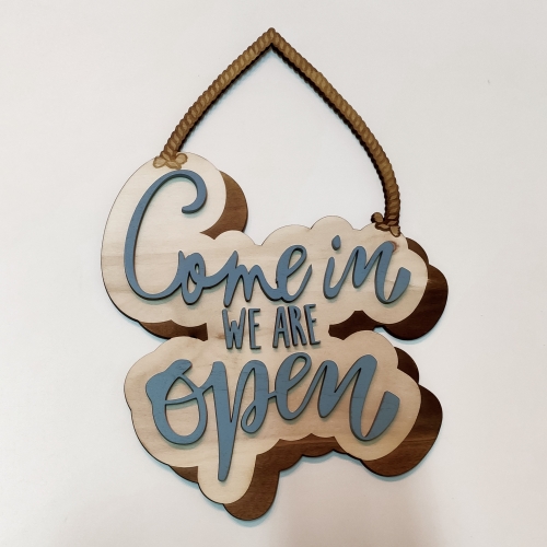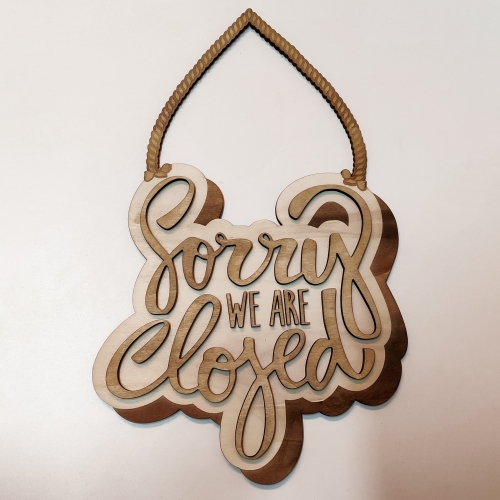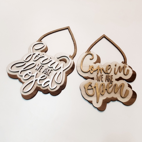 Adorable Set of 2 Open/Closed Door Sign with wooden handle! This beautiful all natural wood Set of 2 Open/Closed Door Sign is made to order using a state of the art laser cutter, so you can be sure that the design will be exactly as shown. We can make in other languages, colors and styles, leaving your space with a unique and personalized touch.