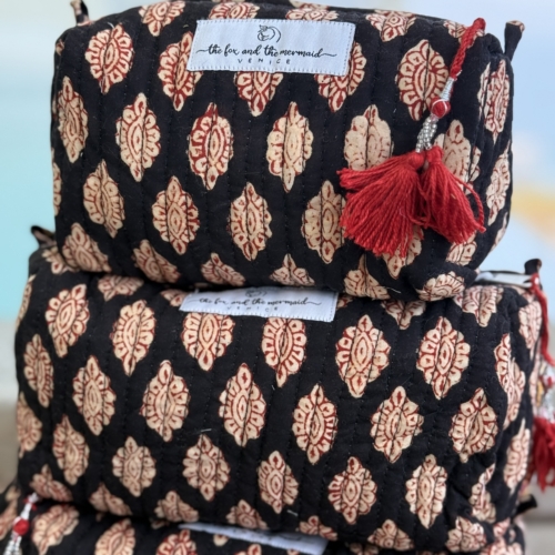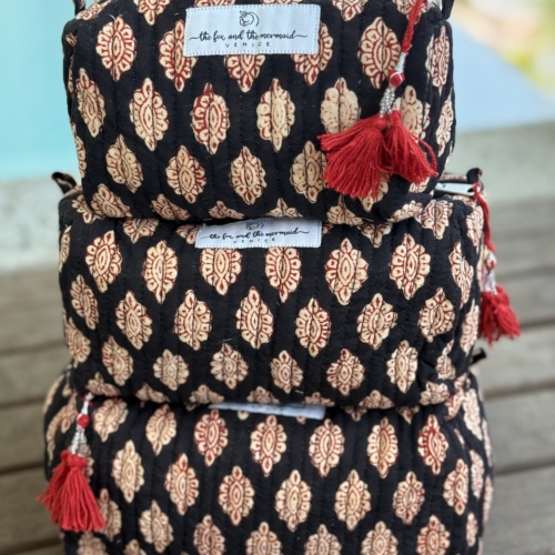 Set of 3 hand block printed toiletry bags/dopp kits. Sell individually or as a set. Makes a great gift or stocking stuffer.