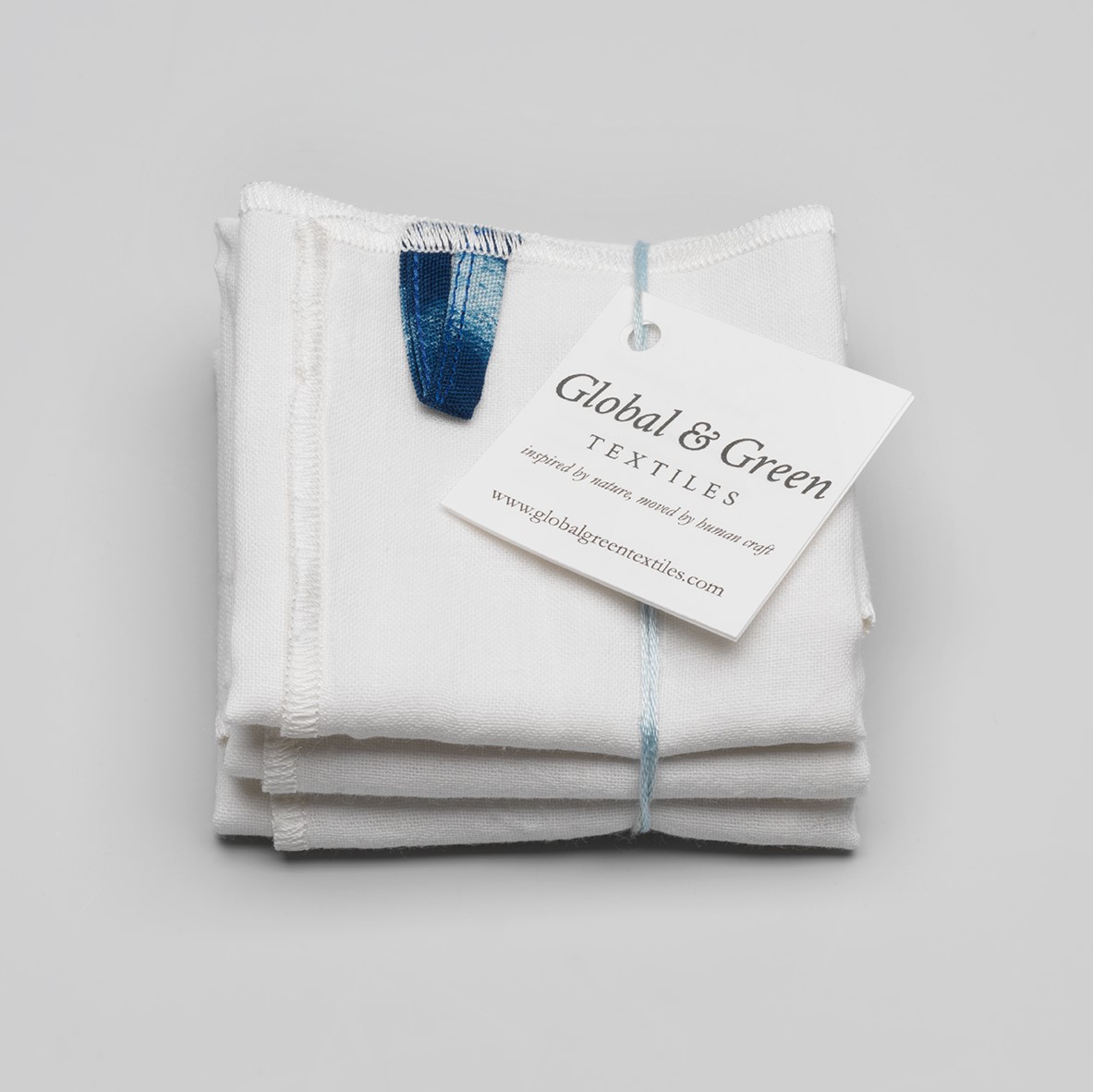 Set of 3 facial cloths, khadi cotton with indigo loop