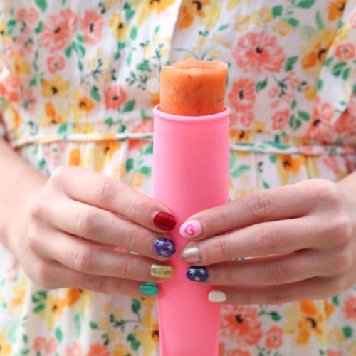 Make your own squeezy ice lollies year round This brilliant and bright set of 6 silicone ‘squeezy’ ice lolly moulds with lids can be used to make homemade ice lollies at home. Let your imagination run wild – how about giant ice cube pops with fruit frozen in them, so pretty! These moulds are perfect for freezing fruit and herbs too. Endlessly reusable, BPA free and in 6 bright colours: neon pink, letterbox red, bright orange, sunny yellow, royal blue and berry purple. No arguing over who’s is whose! Size: 19.5cm long x 4.5cm diameter, approx. 110ml Care: Silicone mould is dishwasher safe on top rack. Wash before use and dry thoroughly. How to use: Remove the lids and pour in your fruit or yogurt ice lolly mix into the moulds up to the indicated line. Or fruit or herbs and water. Replace lids and freeze until set. After freezing gently warm the mould under a warm tap to loosen and serve. Eat from the mould by squeezing the bottom and slowing moving your ice lolly up as you enjoy!
