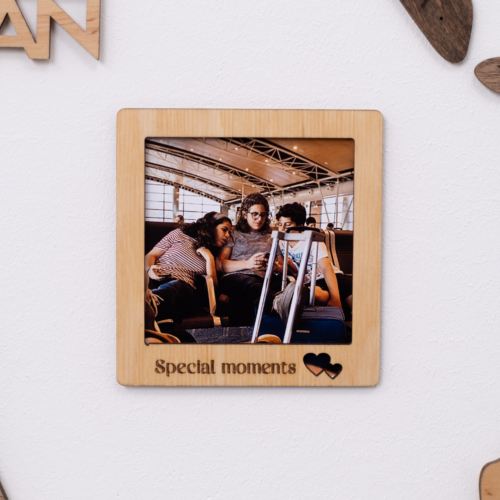 PERKS made of birch plywood double-sided tape is already on the Frames to place your photos in default engraving: Special moments custom engraving is available, please inform our manager via email at service@enjoythewood.com Why use photo frames? a stylish addition to a wooden world map, place anywhere you want remember your travels, there is a thread that leads from the frame to the place you have visited a family tree – photos of family members can be placed near the map: the older ones are at the bottom, the younger ones are at the top a guide to happy moments from the past and stories of memorable experiences the photo frames can be positioned in chronological order with the indication of the event date IN THE BOX the product is sold in Sets only which consist of 9 photo frames in different sizes ( 3 of each size) + double-sided sticky tape If you want to order another Set, please inform our manager via email at service@enjoythewood.com and we will find the right solution for you! SIZES The sizes of the Frames: for horizontal-oriented photos – 17,5 х 13 cm (6,8 x 5,1 inch) for vertical-oriented photos – 18 х 12,5 cm (7,1 x 4,9 inch) for Polaroid-sized photos – 9,5 х 9 cm (3,7 x 3,5 inch) Recommended Photo sizes: for horizontal-oriented photos – 15 х 10 cm (5,9 x 3,9 inch) for vertical-oriented photos – 15 х 10 cm (5,9 x 3,9 inch) for Polaroid-sized photos – 8 х 8 cm (4,3 x 3,5 inch) GOOD TO KNOW handcrafted with love shades vary because it’s made of natural wood