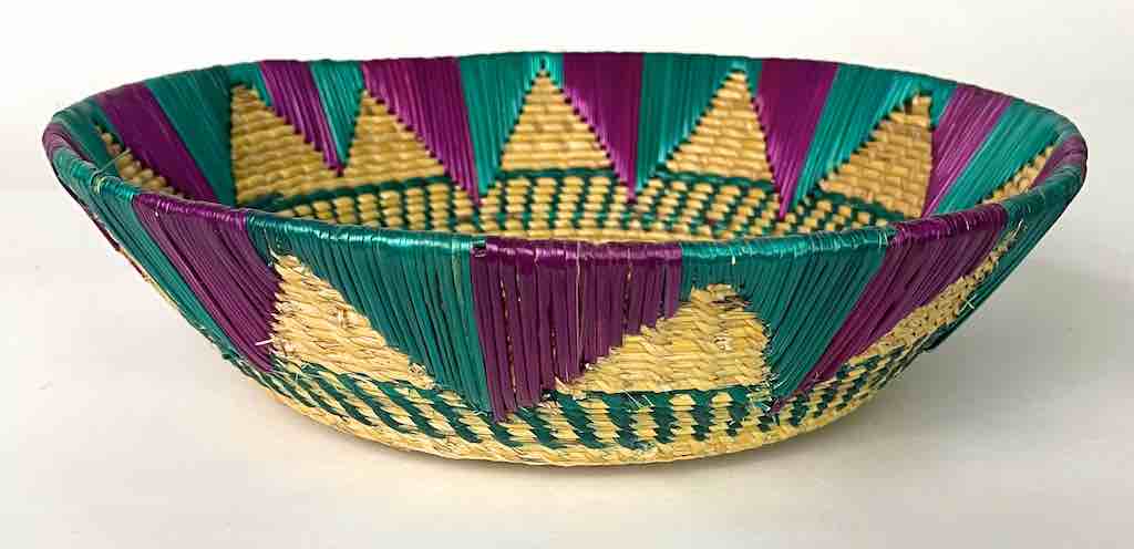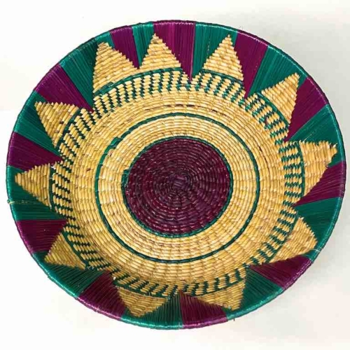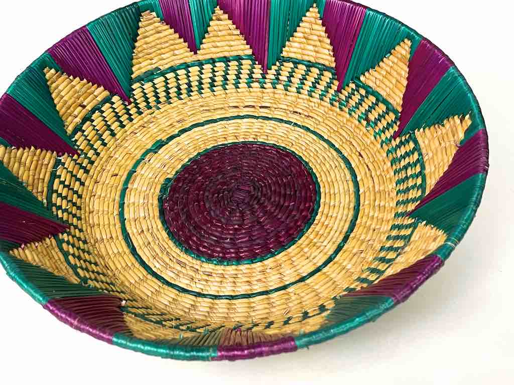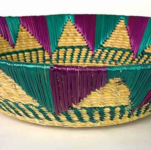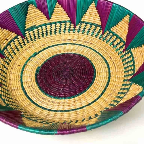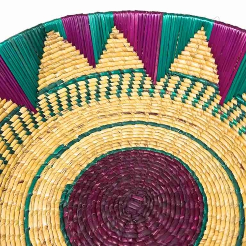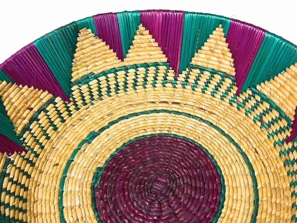 Shallow Light Sorghum Straw Baskets Purple & Green | 13.25″ x 3.5″