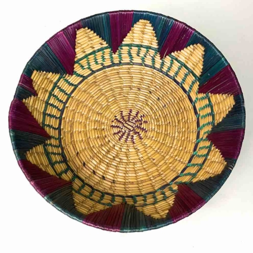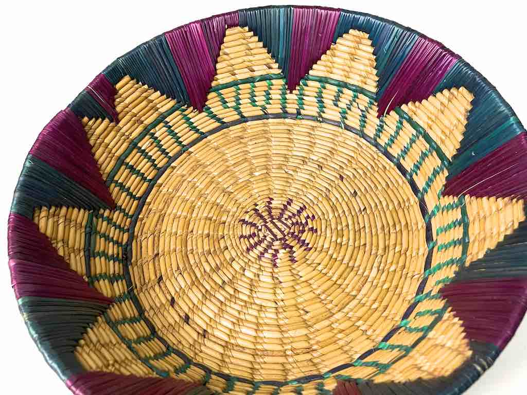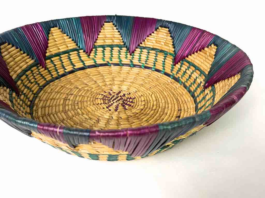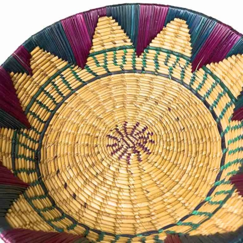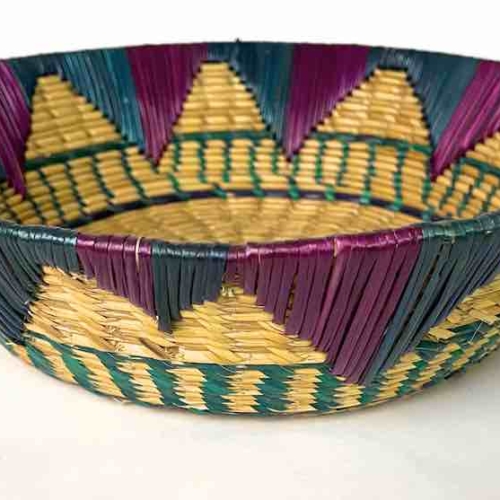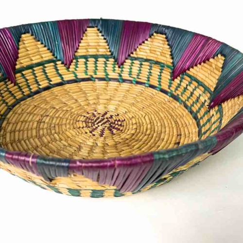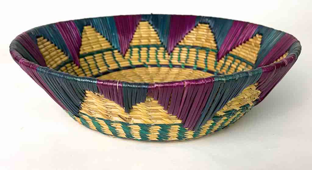 Shallow Light Sorghum Straw Baskets Purple & Green | 13.5″ x 3.5″