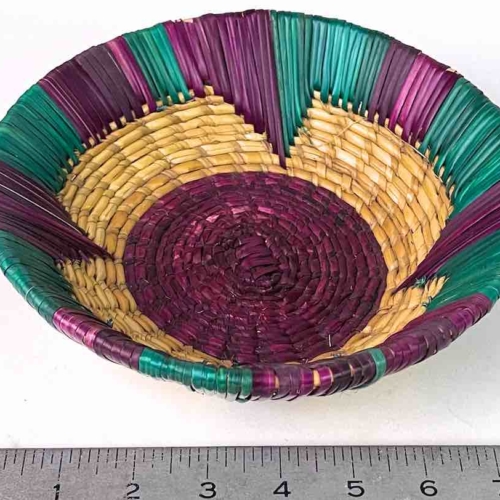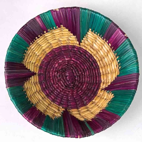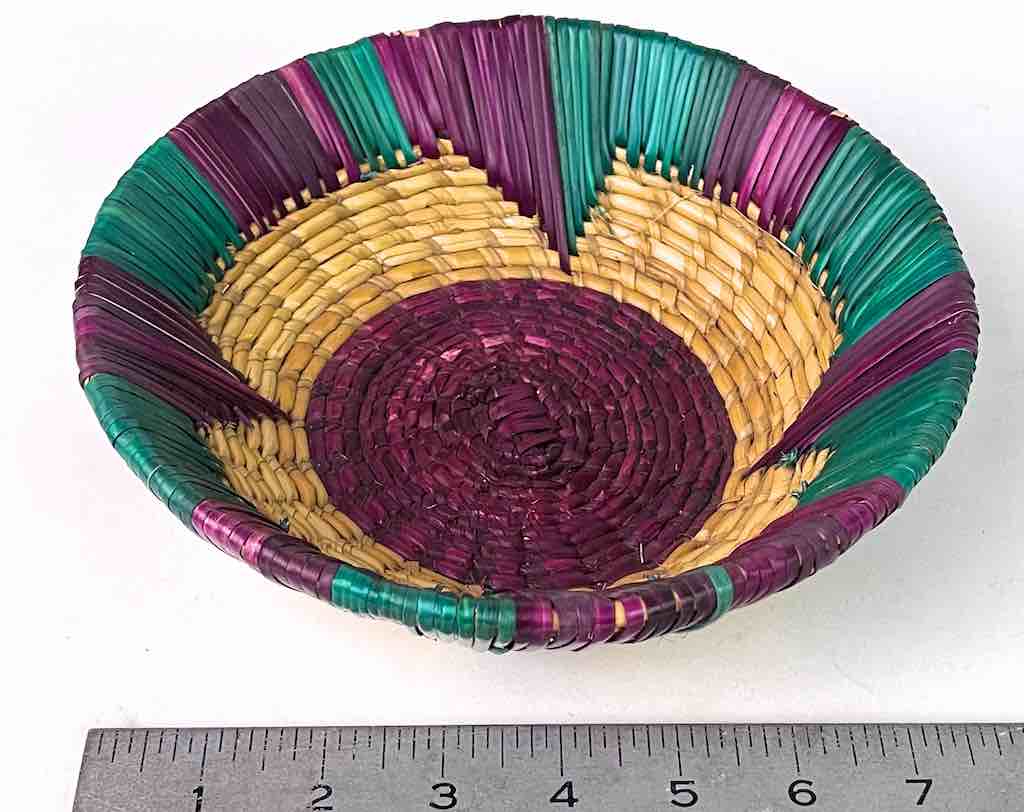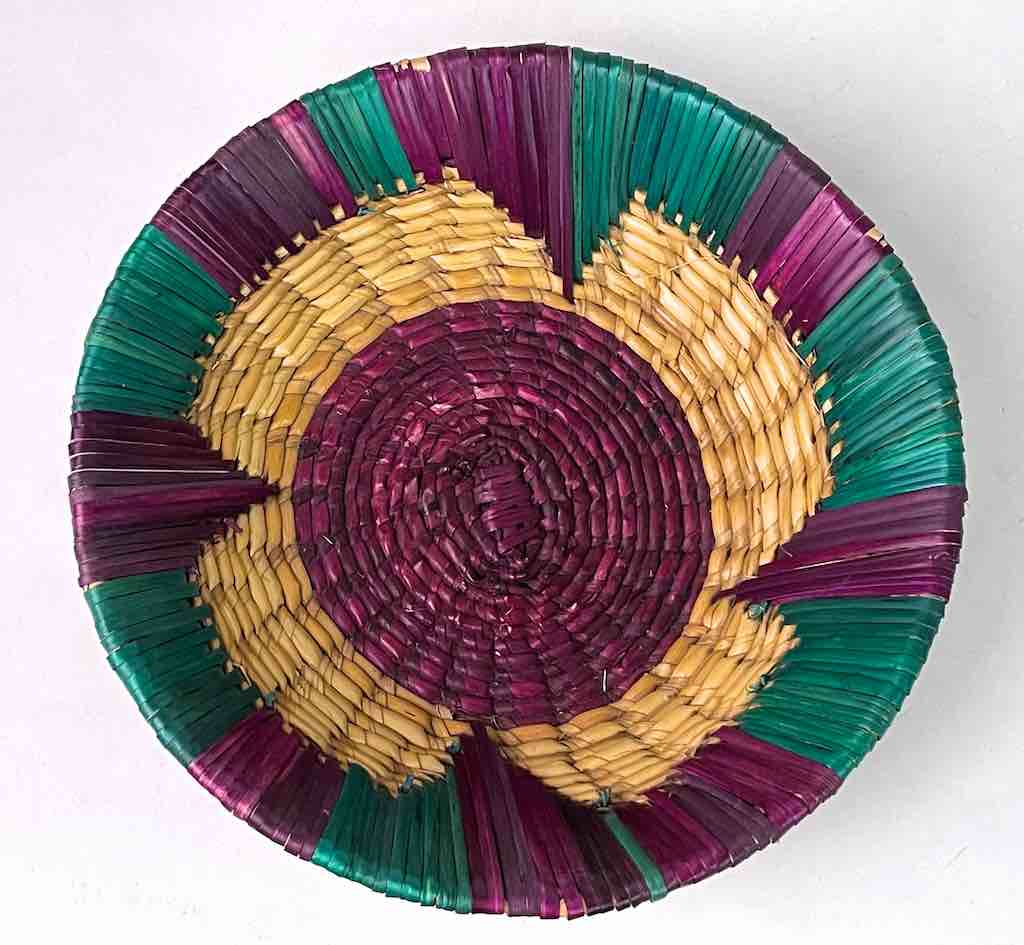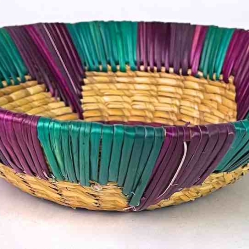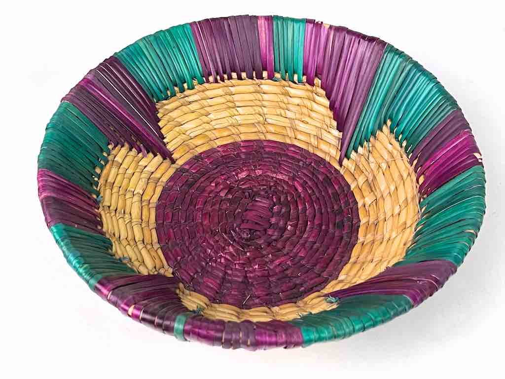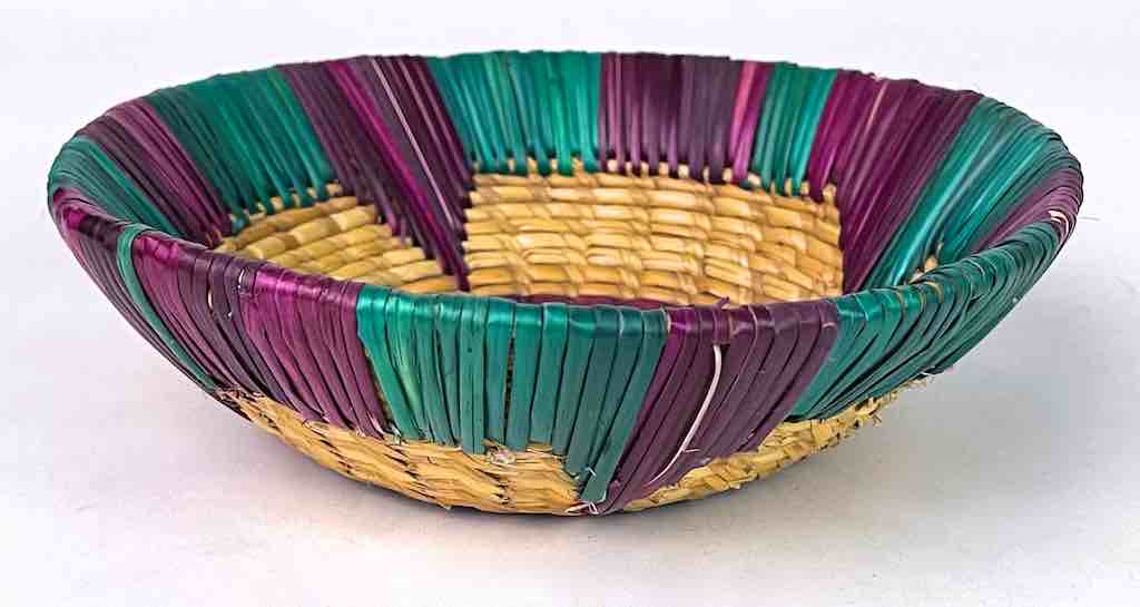 Shallow Light Sorghum Straw Baskets Purple & Green | 8″ x 2.25″