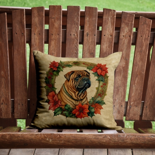 Throw Pillow featuring breed specific Shar Pei artwork. Celebrate Christmas with this Christmas Pillow. Add a touch of vibrancy and comfort to your outdoor seating with Caroline’s Treasures Fabric Decorative Pillow. Measuring approximately 14 inches by 14 inches, this outdoor pillow is crafted to elevate the appeal of your patio furniture, infusing it with vivid color and artistic flair. The pillow includes a 100% Polyester Fabric sham filled with a quality pillow form to provide superior comfort. Innovatively made from our brand new material, specifically woven for its water resistance, this pillow is designed for durability. The soft canvas fabric offers versatility in use, fit for your indoor couch or your outdoor patio, porch, or veranda. The fabric is dyed with colorfast dyes built for resilience against weather conditions, ensuring the pillow retains its beauty over time. Constructed by sewing three fabric pieces to create a sham, the polyester insert is then nestled inside to form the pillow, resulting in an overstuffed pillow that maintains its shape. Both the sham and the pillow insert are proudly made in the United States. As the pillows are handcrafted, there may be minor variations in size, further enhancing their unique charm. Experience comfort in style with Caroline’s Treasures Fabric Decorative Pillow.