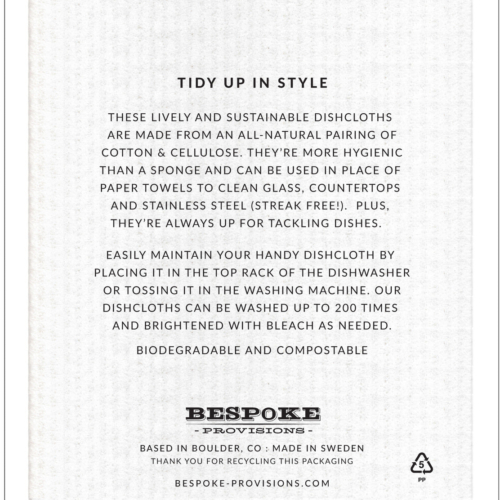 Our Sheep Swedish Dishcloths are made from an all natural pairing of cotton and cellulose, these cleaning cloths are more hygienic than a sponge and can be used in place of paper towels to clean glass, countertops and stainless steel- plus, they’re always up for tackling dishes.