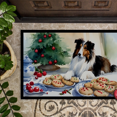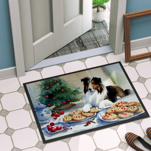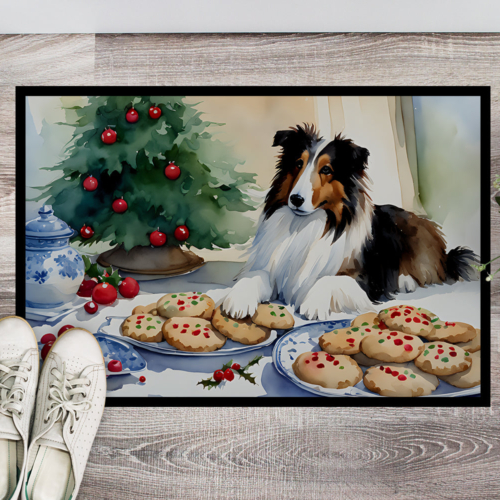 Doormat featuring breed specific Sheltie Shetland Sheepdog artwork. Celebrate Christmas with this Christmas Doormat. Welcome your guests in style with our Artwork Door Mat, designed to withstand almost any weather condition. This mat, measuring approximately 24 by 36 inches, is held together by durable black binding tape. Its top layer, composed of polyester felt, is dyed with the eye-catching image you see on the mat. A few layers below provide the mat with stability, while its rubber bottom is stamped to help prevent slipping and ensures safety. Our mat works wonderfully as both an indoor or outdoor door mat. For cleaning, simply hose it off with water or use a power washer – no need for any cleaner that produces suds. Avoid scrubbing with a brush, instead, opt for the vacuum on floor setting. Designed manufactured and printed in the USA, this mat is a perfect addition to your porch, outdoor kitchen, entryway, or any indoor space. Its unique design makes it a charming decorative rug that greets your guests and adds a stylish touch to your home decor.
