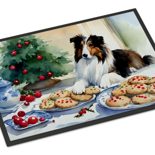 Doormat featuring breed specific Sheltie Shetland Sheepdog artwork. Celebrate Christmas with this Christmas Doormat. Welcome your guests in style with our Artwork Door Mat, designed to withstand almost any weather condition. This mat, measuring approximately 24 by 36 inches, is held together by durable black binding tape. Its top layer, composed of polyester felt, is dyed with the eye-catching image you see on the mat. A few layers below provide the mat with stability, while its rubber bottom is stamped to help prevent slipping and ensures safety. Our mat works wonderfully as both an indoor or outdoor door mat. For cleaning, simply hose it off with water or use a power washer – no need for any cleaner that produces suds. Avoid scrubbing with a brush, instead, opt for the vacuum on floor setting. Designed manufactured and printed in the USA, this mat is a perfect addition to your porch, outdoor kitchen, entryway, or any indoor space. Its unique design makes it a charming decorative rug that greets your guests and adds a stylish touch to your home decor.