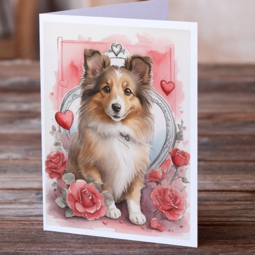 Sheltie Valentine Roses Greeting Cards Pack of 8