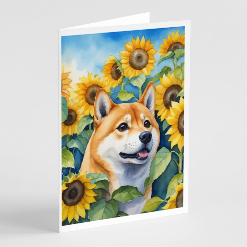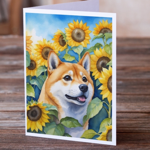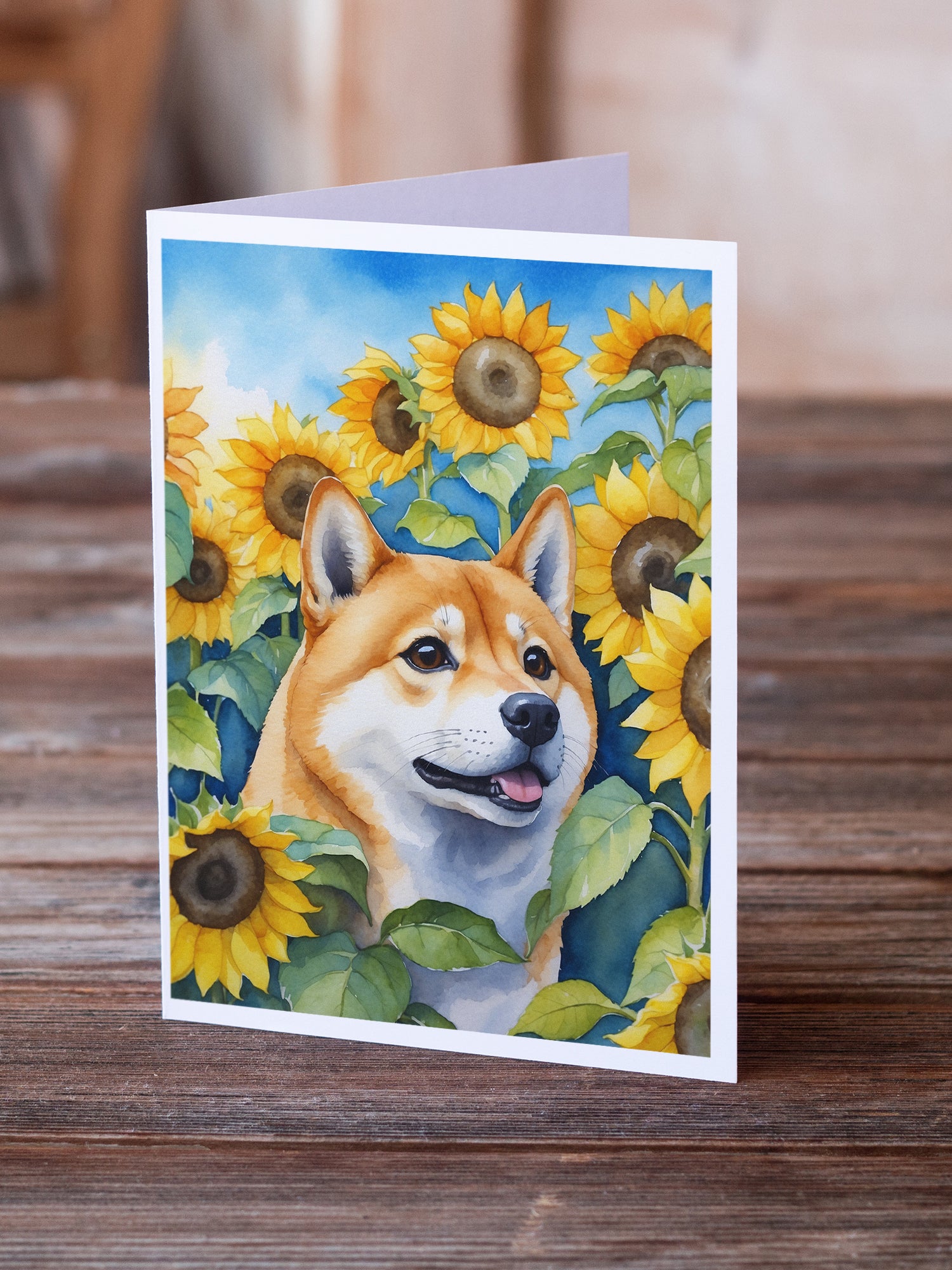 Shiba Inu in Sunflowers Greeting Cards Pack of 8