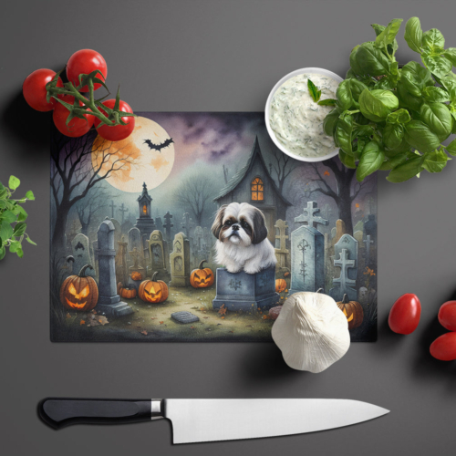 Shih Tzu Spooky Halloween Glass Cutting Board