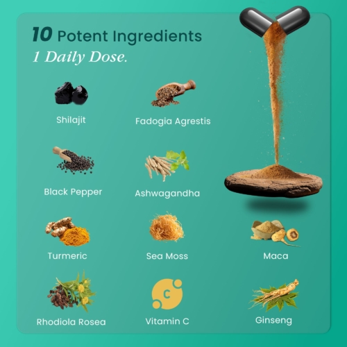 🏔️ Natural Himalayan Shilajit Capsules – Carefully Formulated Premium Shilajit extract enriched with fulvic acid, black pepper, and over 85+ trace minerals. Designed as a daily wellness blend suitable for both men and women. 💪 Shilajit Capsules for Men – Vitality & Active Lifestyle Contains Shilajit, Ashwagandha, and Maca Root, combined to complement your daily routine and physical activity. 🌸 Daily Support for Women – Balance & Wellness A natural combination of Shilajit, ashwagandha daily use formula, and Sea Moss, created to fit into your everyday wellness approach. 💊 One Capsule a Day – No Mess, No Bitter Taste Convenient, vegan-friendly capsule format – no resin preparation required. Easy to include in your day, with no strong taste or mess. ⚡ Enhanced Absorption with Fulvic Acid & Black Pepper This Shilajit complex includes fulvic acid and black pepper, ingredients traditionally used to support the absorption of Herbal-based nutrients.