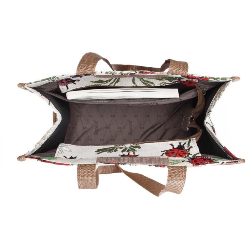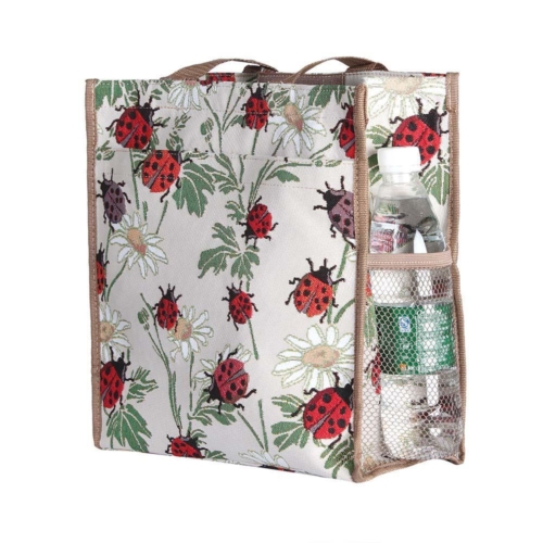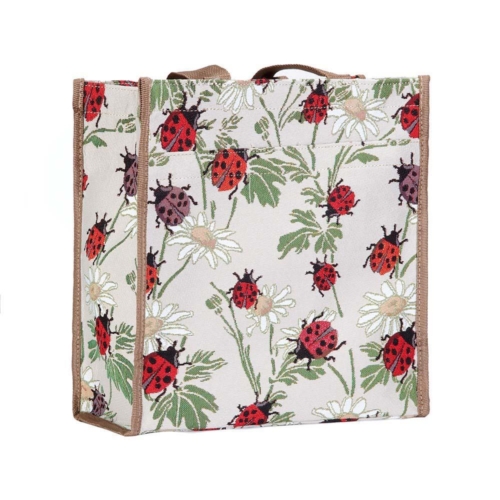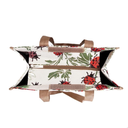 Top of the bag is gusseted with the tapestry material and has zip fastening across the full width