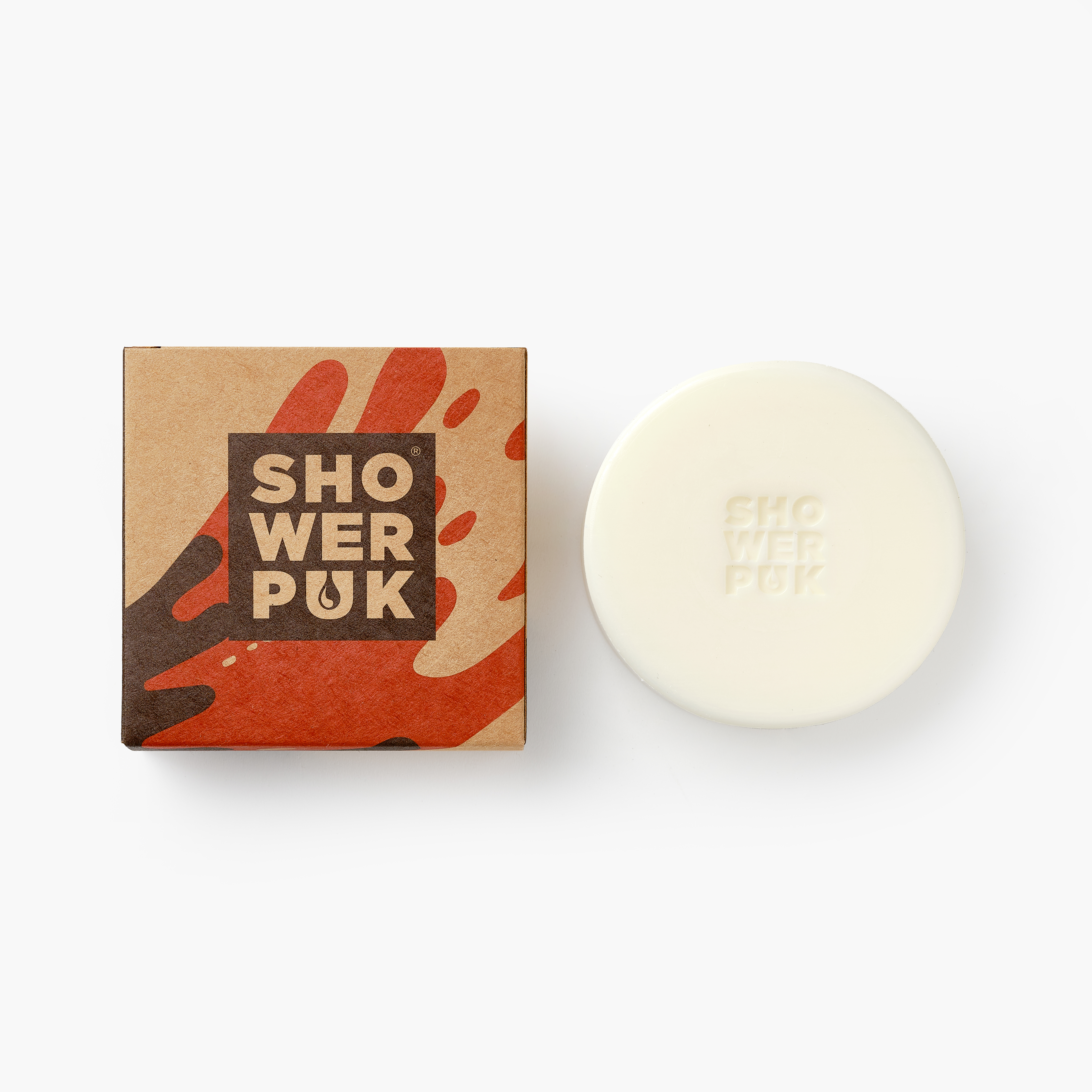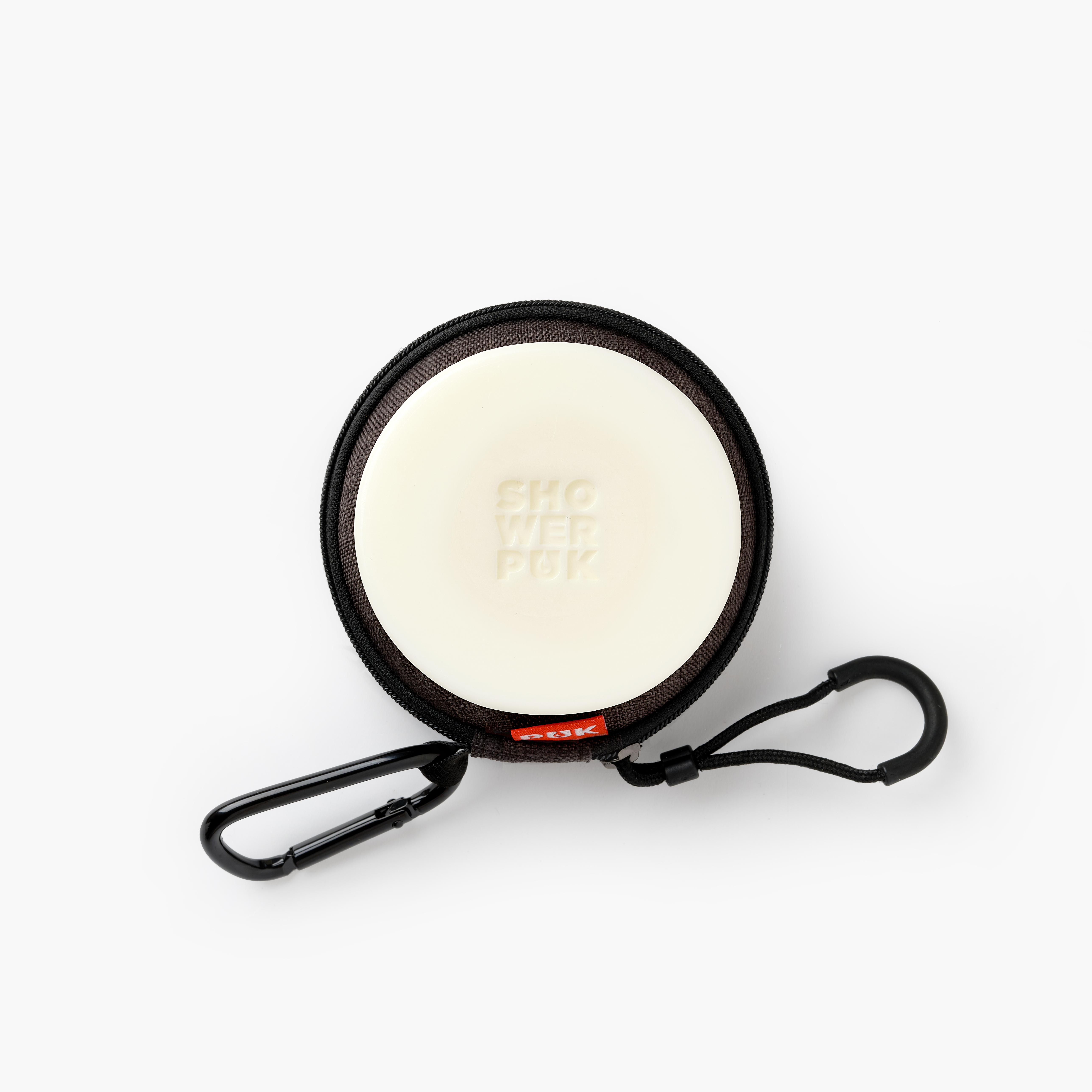 Shower PUK is an affordable, long lasting shower specific solid soap. The PUK Case is a tough travel companion for PUK. Hardened, zip closed and with a handy hook its perfect for keeping kit dry while out and makes a striking and practical gift. .