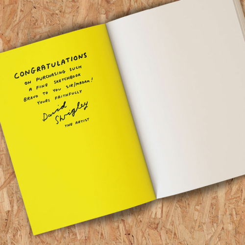 Prepare to add some style to your shelves with our range of A5 sketchbooks. Bringing quirky humor and artistic flair to the world of stationery with covers exclusively designed by the renowned artist, David Shrigley in his usual distinctive style.These funny sketchbooks are printed in the UK on sustainable FSC Accredited paper – luxurious, heavy weight 135gsm GF Callisto Diamond white.Features:Thread-sown spine300gsm cover (printed inside and out) 144 blank pages of pure creative potential!Supplied in: Packs of 6Dimensions: 148mm x 210mm (A5)Weight: 328g