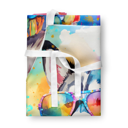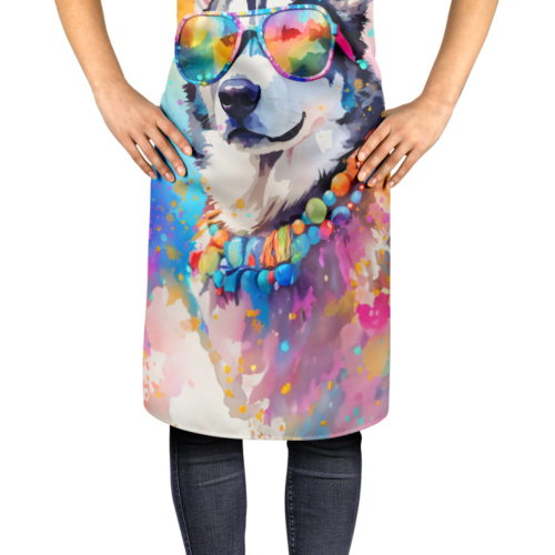 Apron featuring breed specific Siberian Husky artwork. Elevate your cooking, baking, and grilling experiences with our versatile Kitchen or BBQ Apron. This Bib Style apron isn’t just limited to culinary activities – it also serves as an excellent baking apron, artist apron, server apron, gardening apron, or even a dog grooming apron. The apron showcases vibrant full-color artwork contributed by one of our talented artists, bringing a dash of style to your daily tasks. With dimensions of approximately 27″W x 30″H, it provides ample coverage to protect your clothing from spills and splashes. Our apron is meticulously crafted from 100% Ultra Spun Polyester, known for its durability and lightweight nature. The apron comes with white tie straps, ensuring a comfortable and adjustable fit for all. It’s a perfect choice for kitchen apron enthusiasts, whether you are a woman or a man. Designed for easy maintenance, this apron is fully machine washable. The quick-drying polyester material actively reduces staining, keeping your apron looking fresh and new for longer. Our beautifully designed apron isn’t just a functional kitchen accessory – it’s a fashion statement in the culinary world!