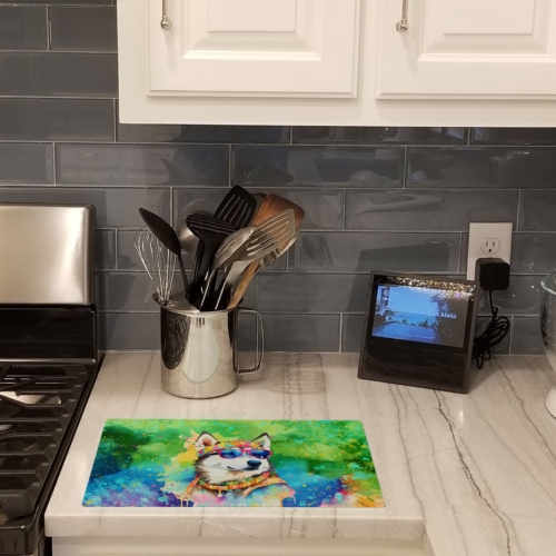 Glass Cutting Board featuring breed specific Siberian Husky artwork. Introduce your kitchen to the vibrant, large Decorative Glass Cutting Board from Caroline’s Treasures. Crafted from resilient tempered glass, this board is not only a utilitarian necessity but also a colorful art piece. With its generous dimensions of 15 inches in height and 12 inches in length, it offers ample space for all your cutting needs. Every piece showcases captivating artwork from distinguished artists, bringing an aesthetic edge to your kitchen. Beyond its attractive design, this cutting board ensures your countertop stays pristine and unscathed, owing to its heat-resistant properties. Engineered with user convenience in mind, it features non-skid feet for stability, and rounded corners for additional safety. Its robust construction renders it virtually unbreakable, guaranteeing longevity. The board comes with protective feet bumpers, maintaining its position during use. This product is recommended to be hand washed only. Proudly printed and assembled in the United States, this cutting board exemplifies superior craftsmanship. With Caroline’s Treasures’ Decorative Glass Cutting Board, you’re investing in a blend of functionality and artistic flair.