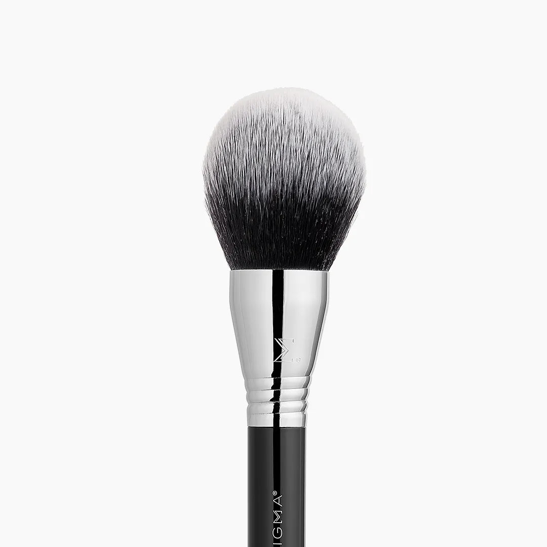 Achieve gorgeous sun kissed skin no matter the season with this extra-large fluffy bronzer brush. The lavishly soft SigmaTech® bristles and domed shape perfectly sweep on and blend your favorite bronzers. Great for your face, neck, and décolletage, this brush is a must-have for faking a post-beach complexion all year round! HOW DO I USE IT? Use the domed, extra-large shape to lightly apply bronzer to your cheeks in a C shape up to the temples. Blend it out using circular motions. You can also apply bronzer along the hairline, down the center of the nose, or on the neck, chin, and décolletage. The general rule of thumb is to apply bronzer to all of the spots on your face that naturally get sunlight – the neck being the one exception. Function: Quickly apply bronzer or powder Unique Feature: Domed, extra-large brush head Recommended Use: Sweep bronzer or powder onto the face, neck and décolletage for an instant sunkissed finish Coverage: Medium