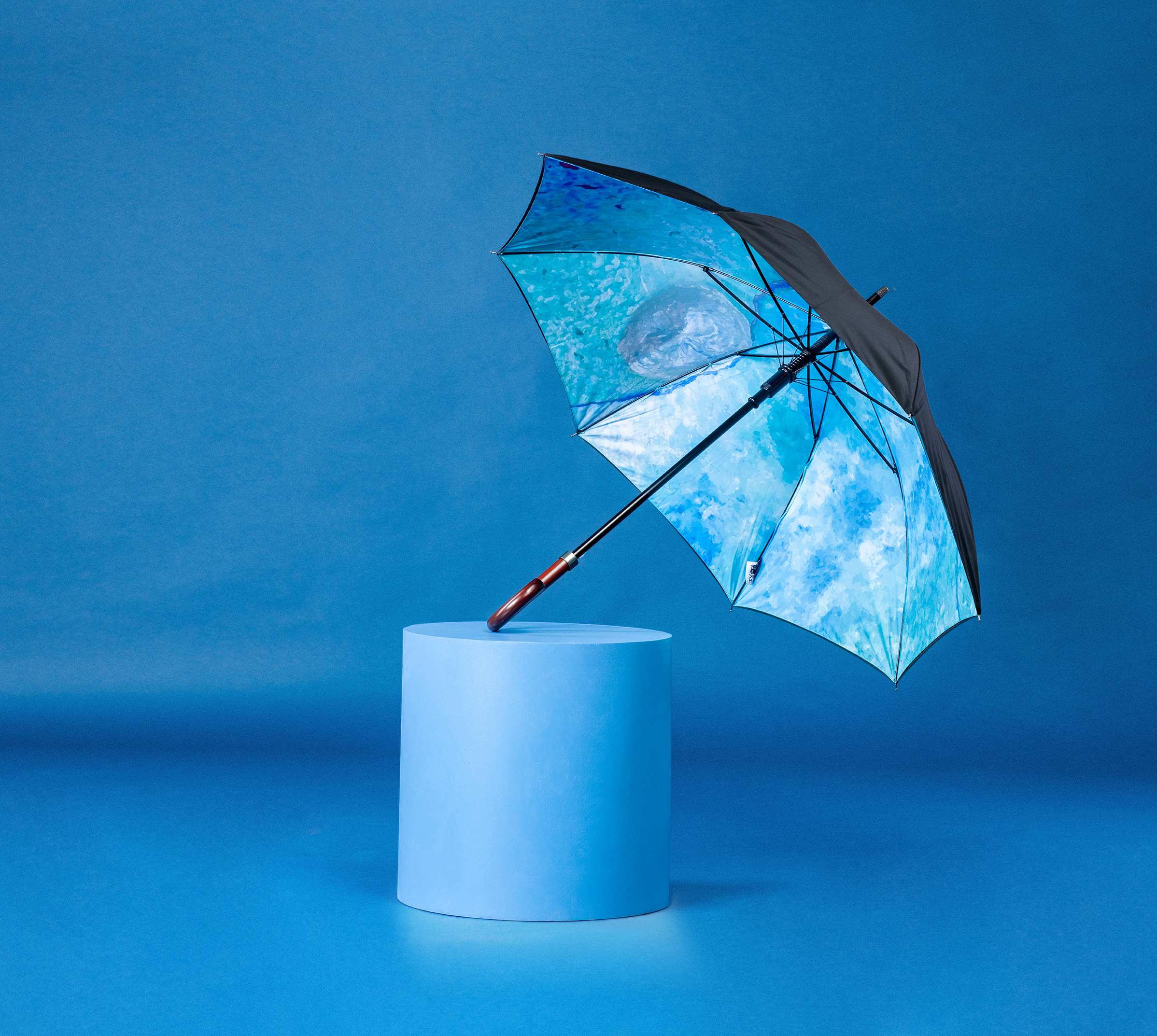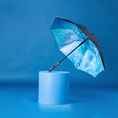 8 Ribs: H: 6 cm, L: 90 cm, W: 495 grams; Canopy Dimension: 105 cm Black outer and multicoloured inner pongee fabric. Our double pongee fabrics ensure higher resistance to tearing, abrasion and that Your umbrella dries quickly.