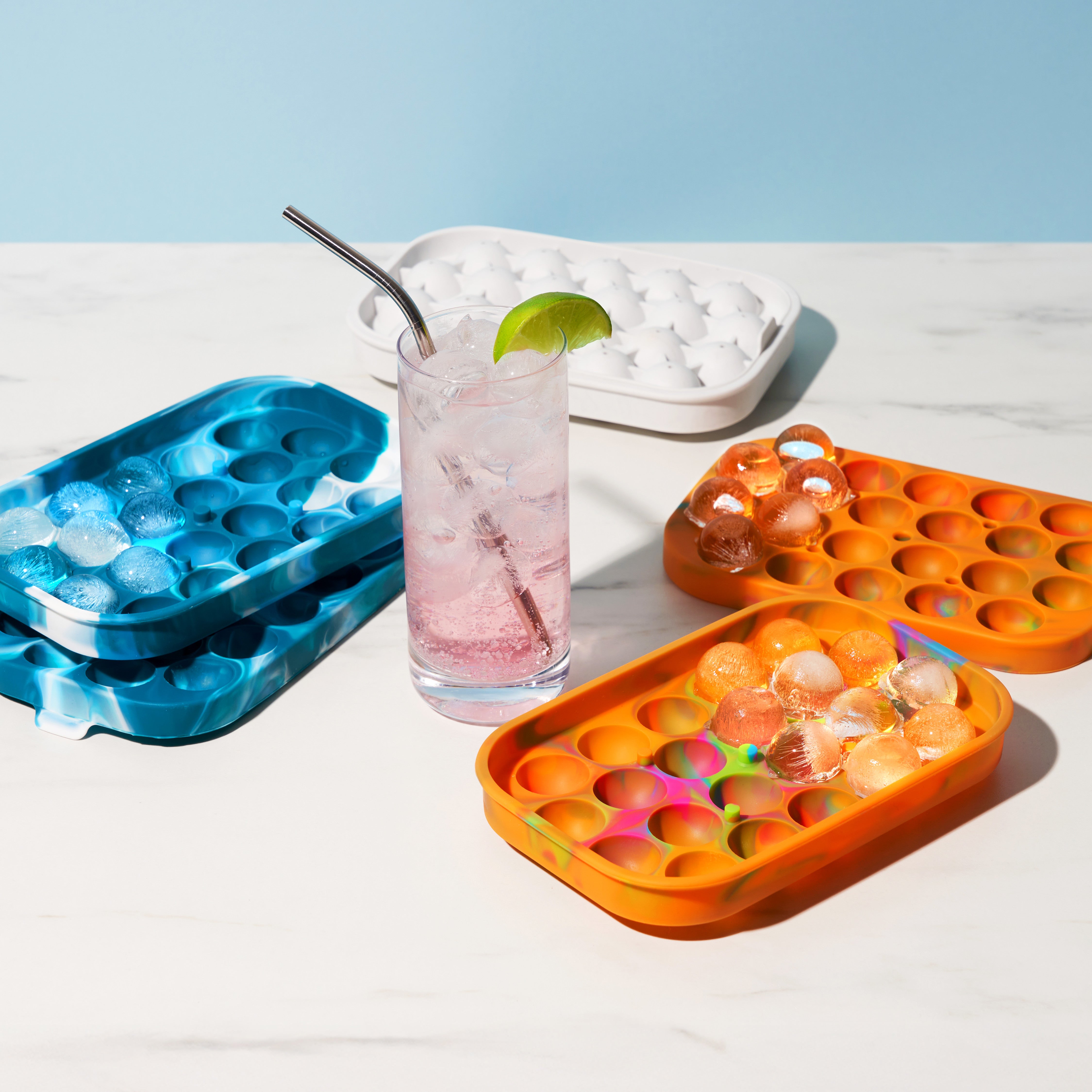 This 22-sphere silicone ice mold creates perfectly round 1” ice balls, ideal for chilling whiskey, cocktails, coffee, lemonade, and infusing fruit and juice flavors. Made from high-quality, food-safe silicone in a colorful marble design, it’s durable, flexible, and versatile. The mold is easy to fill, releases ice effortlessly, and is dishwasher safe for quick and convenient cleaning. Makes 22 round 1” ice spheres Food-safe silicone construction Easy to fill and release ice balls Great for whiskey, cocktails, and coffee Dishwasher safe for hassle-free cleanup