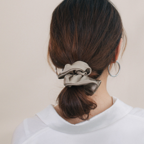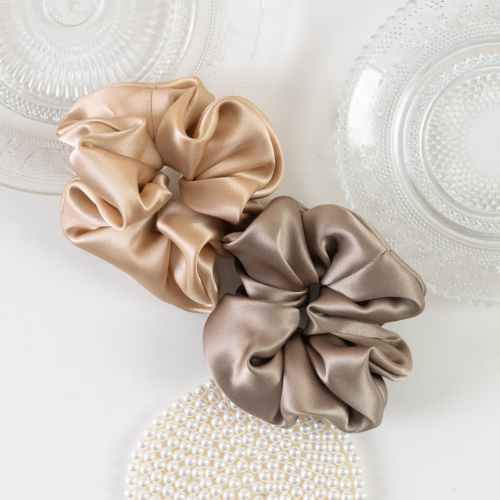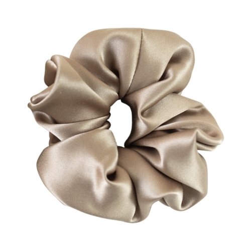 “Silken Hair” Silk Scrunchie Hair Tie – Metallic Taupe