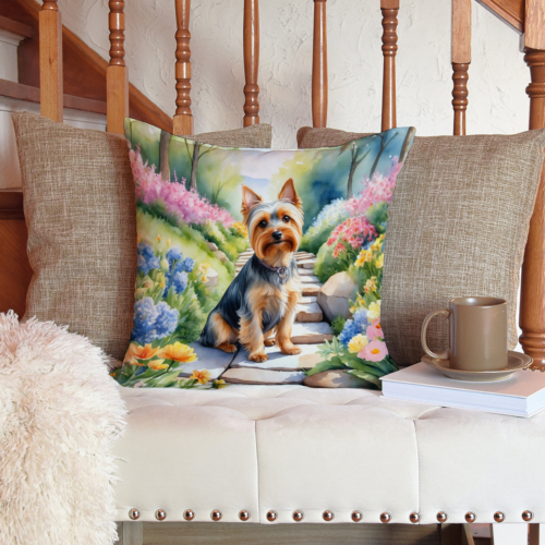 Throw Pillow featuring breed specific Silky Terrier artwork. Add a touch of vibrancy and comfort to your outdoor seating with Caroline’s Treasures Fabric Decorative Pillow. Measuring approximately 14 inches by 14 inches, this outdoor pillow is crafted to elevate the appeal of your patio furniture, infusing it with vivid color and artistic flair. The pillow includes a 100% Polyester Fabric sham filled with a quality pillow form to provide superior comfort. Innovatively made from our brand new material, specifically woven for its water resistance, this pillow is designed for durability. The soft canvas fabric offers versatility in use, fit for your indoor couch or your outdoor patio, porch, or veranda. The fabric is dyed with colorfast dyes built for resilience against weather conditions, ensuring the pillow retains its beauty over time. Constructed by sewing three fabric pieces to create a sham, the polyester insert is then nestled inside to form the pillow, resulting in an overstuffed pillow that maintains its shape. Both the sham and the pillow insert are proudly made in the United States. As the pillows are handcrafted, there may be minor variations in size, further enhancing their unique charm. Experience comfort in style with Caroline’s Treasures Fabric Decorative Pillow.