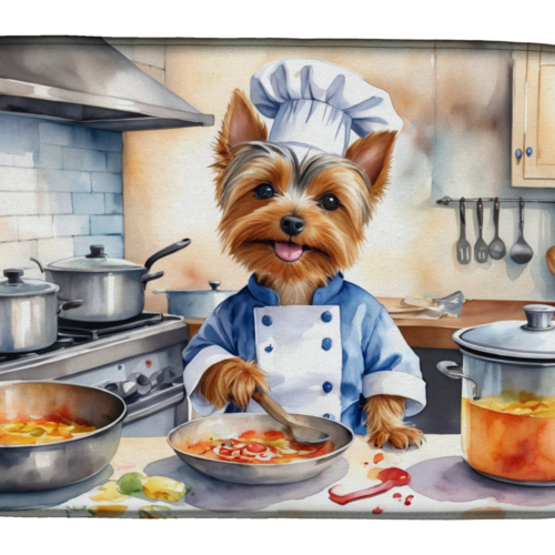 Dish Drying Mat featuring breed specific Silky Terrier artwork. Say goodbye to messy countertops and soggy dish towels with our innovative dish drying mat. Our high-quality dish drying pad is designed to keep your countertops dry while offering a stylish and efficient solution. Whether you’re air drying dishes, glasses, stemware, silverware, pots, pans, bottles, or even fruits and vegetables, our dish mat is the perfect choice. The 14 inches x 22 inches size fits most counters and dish drying racks, and the non-slip design ensures stability. Made with water-absorbent polyester and a polyurethane foam insert, our dish drying mat is not only functional but also durable. It’s machine washable and printed in the USA for long-lasting use. The beautiful artwork adds flair to your kitchen decor, making it a perfect housewarming gift or present for any occasion. Upgrade your kitchen experience with our absorbent and versatile dish drying mat.