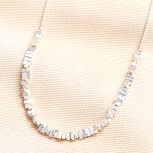 Silver necklace with rectangular bead designFeaturing extender links and a lobster claspElevate any outfit by wearing alone or stackedGift to a special friend or sister on a birthday or occasionMade from: 95% brass, 5% stainless steel