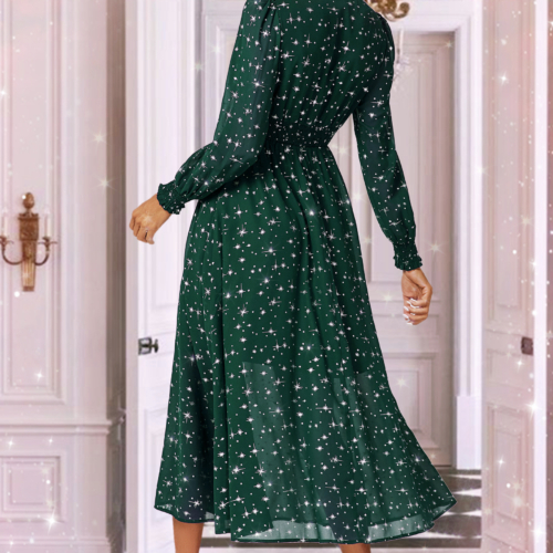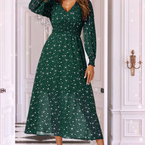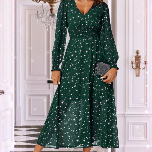 Introducing our Sliver Star Foil V-Neckline Long Sleeve Maxi Dress In Dark Green—a celestial choice for those who love to shine. The dress features a captivating V-neckline that adds a touch of allure, and the sliver star foil detailing brings a celestial and enchanting element. The long sleeves provide both coverage and a touch of elegance, making it suitable for various occasions. The maxi length ensures a graceful and sophisticated look, perfect for making a statement at events. Crafted with meticulous attention, this dress is designed to bring a touch of magic to your wardrobe. Embrace the celestial vibes and let your style twinkle with this radiant and stunning piece.- Cocktail- Christmas Dinner Dress- NYE Dress- Wedding Guest- Party- Going Out- Winter MeasurementsModel wears: UK 8/ EU 36/ US 4Model’s height: 175cm/ 5’8” Composition100% Polyester
