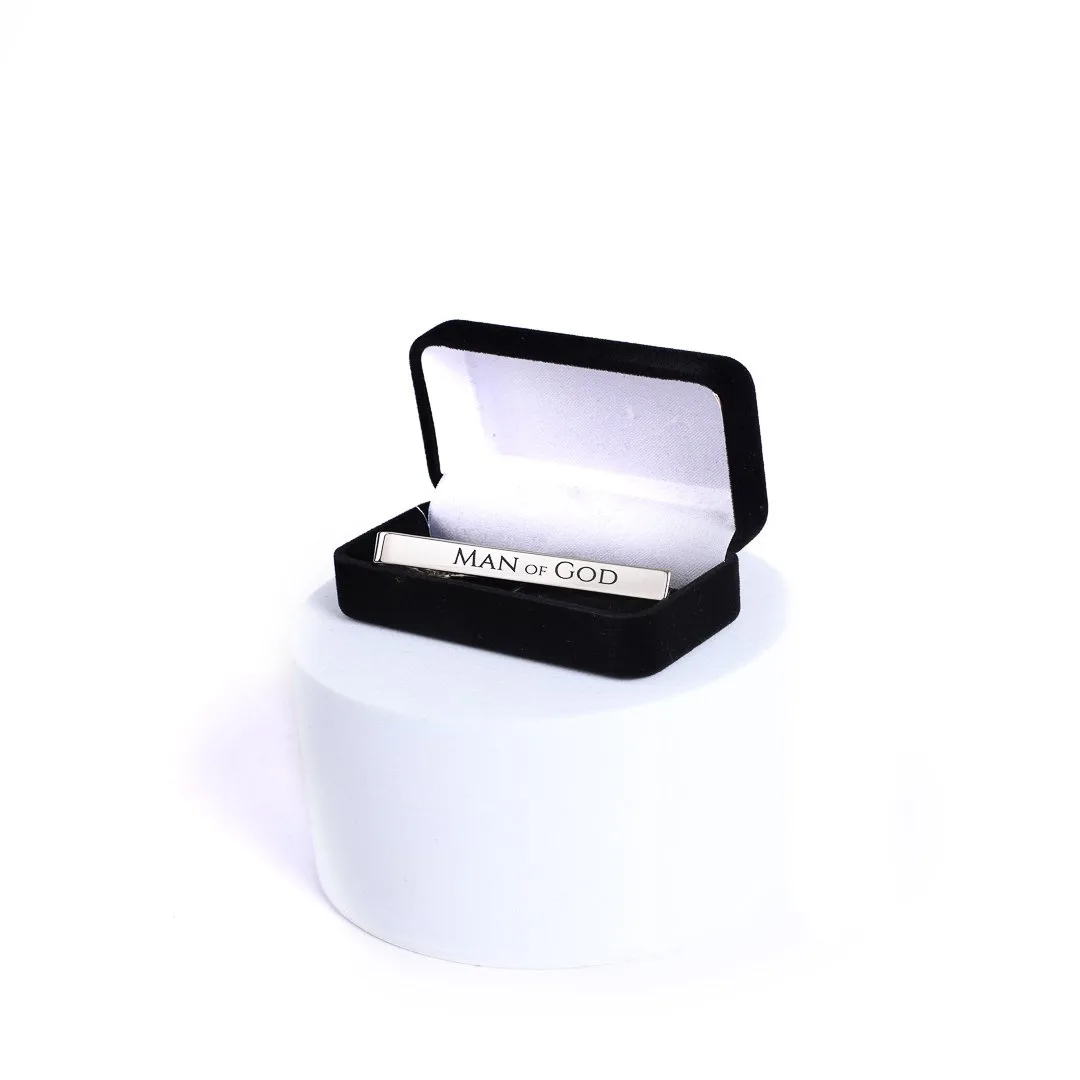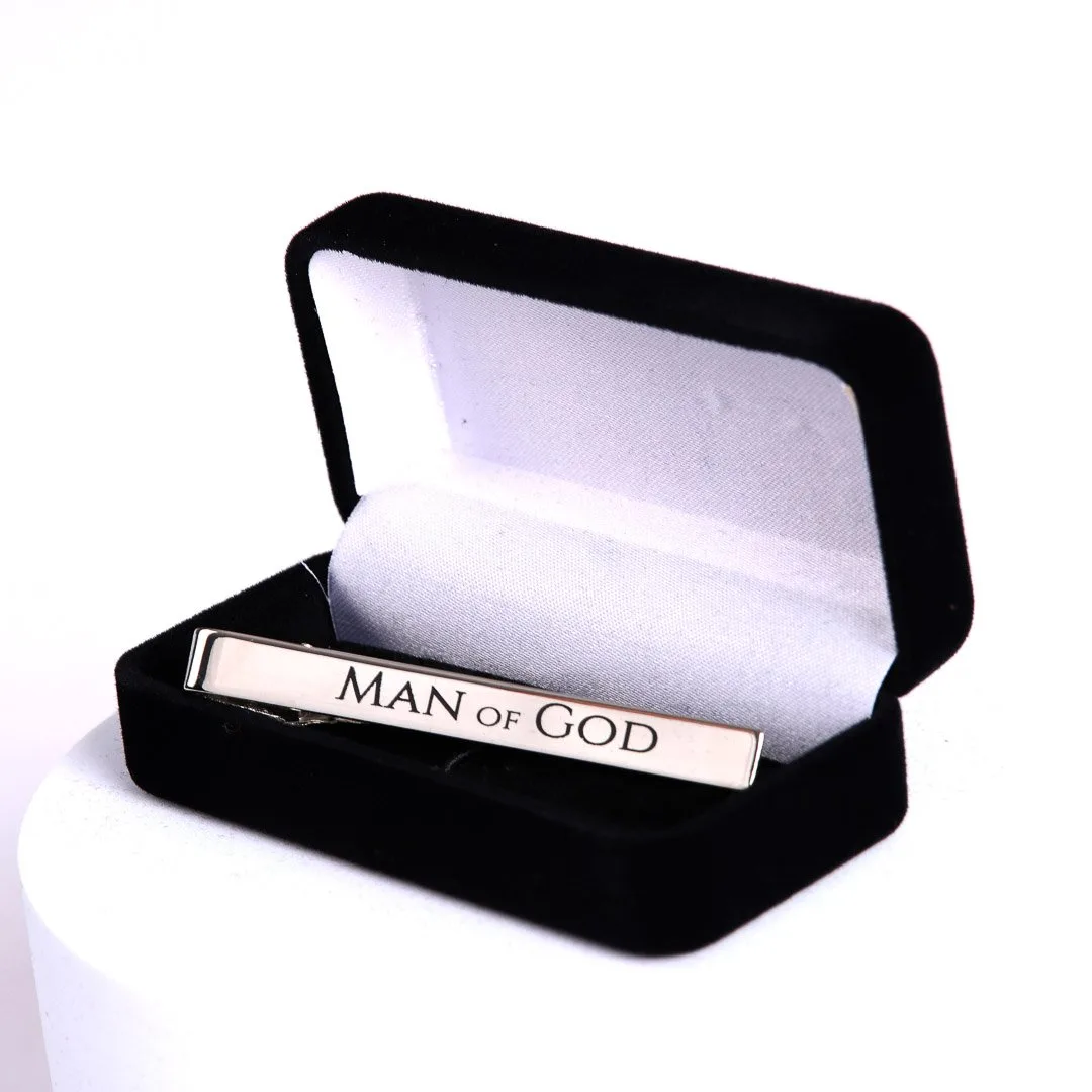 The design features the words Man of God on a reflective silver base, offering a sleek and sophisticated effect. The simple yet powerful message makes this tie bar perfect for both daily wear and special occasions, adding a touch of faith to any outfit. Whether you’re attending a formal event or dressing up for work, this tie bar is an elegant way to carry your faith with you.