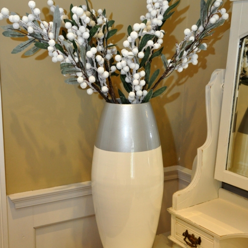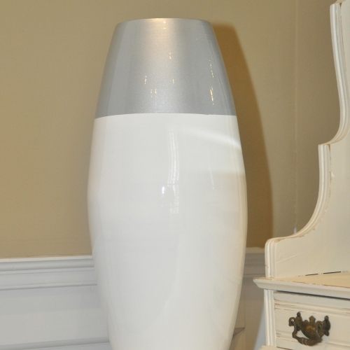 This beautiful silver & white bamboo vase provides a contemporary finish to any table top or floor space, it can be displayed with either dry flowers or as a focal point on its own. Being made from bamboo the vase is also environmentally friendly and sustainable.