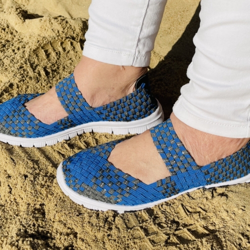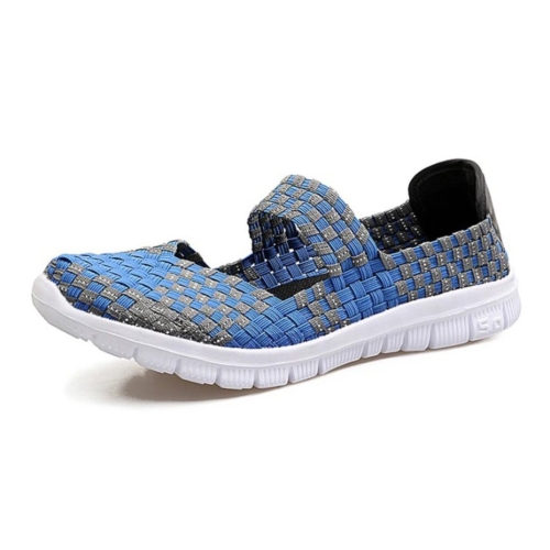 Comfortable and lightweight Mary Jane style slip on shoes featuring a breathable woven elastic upper that stretches to fit your feet.