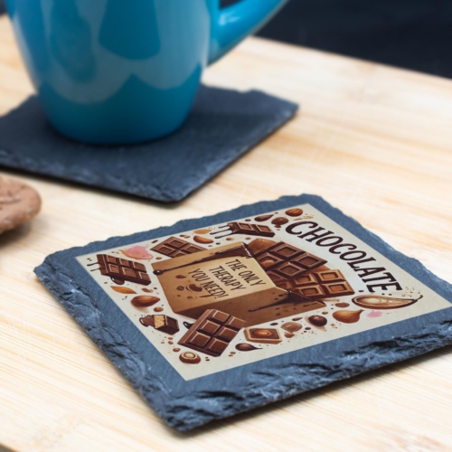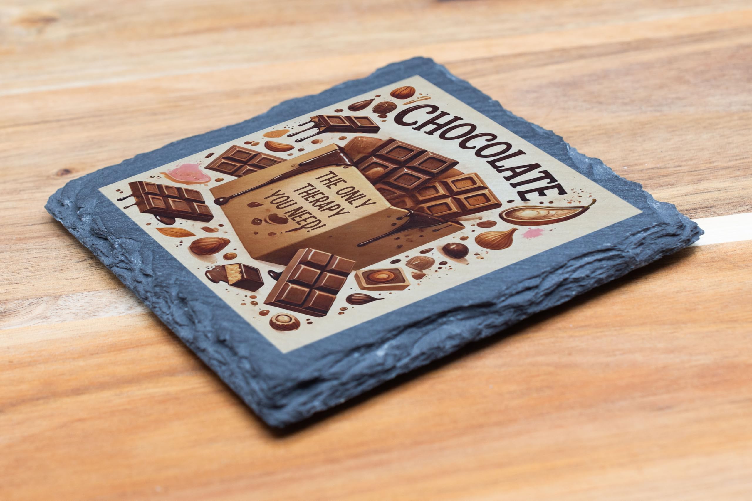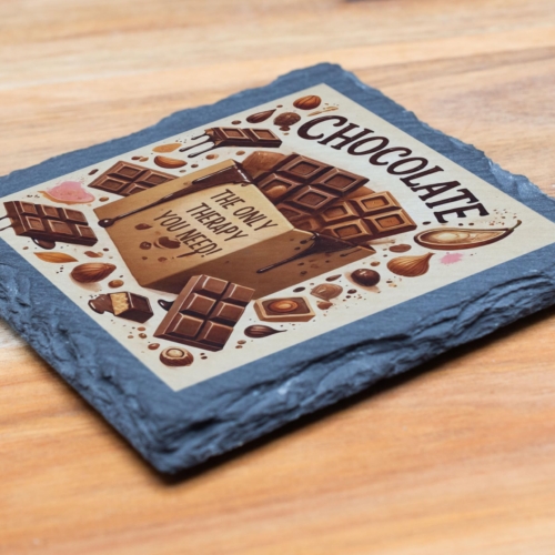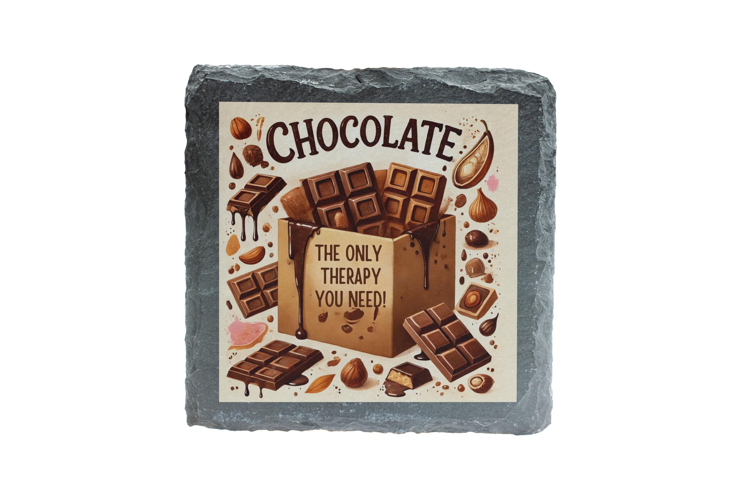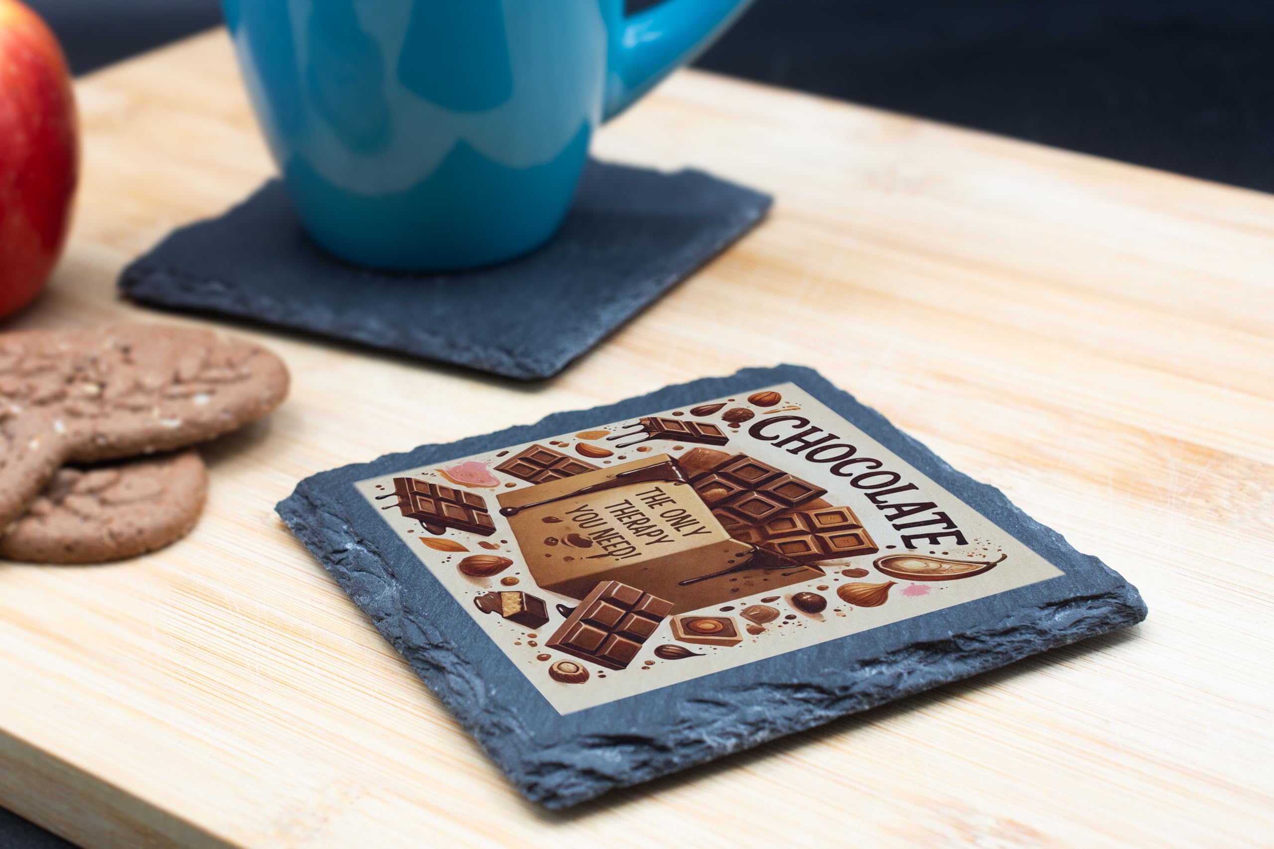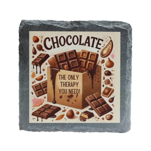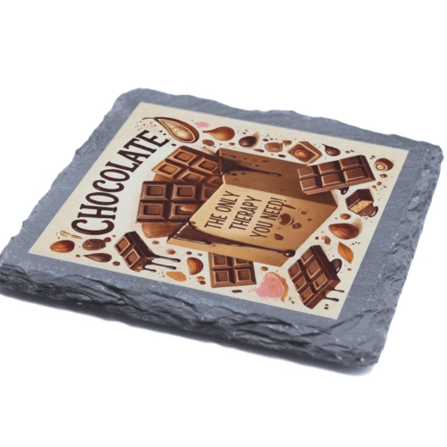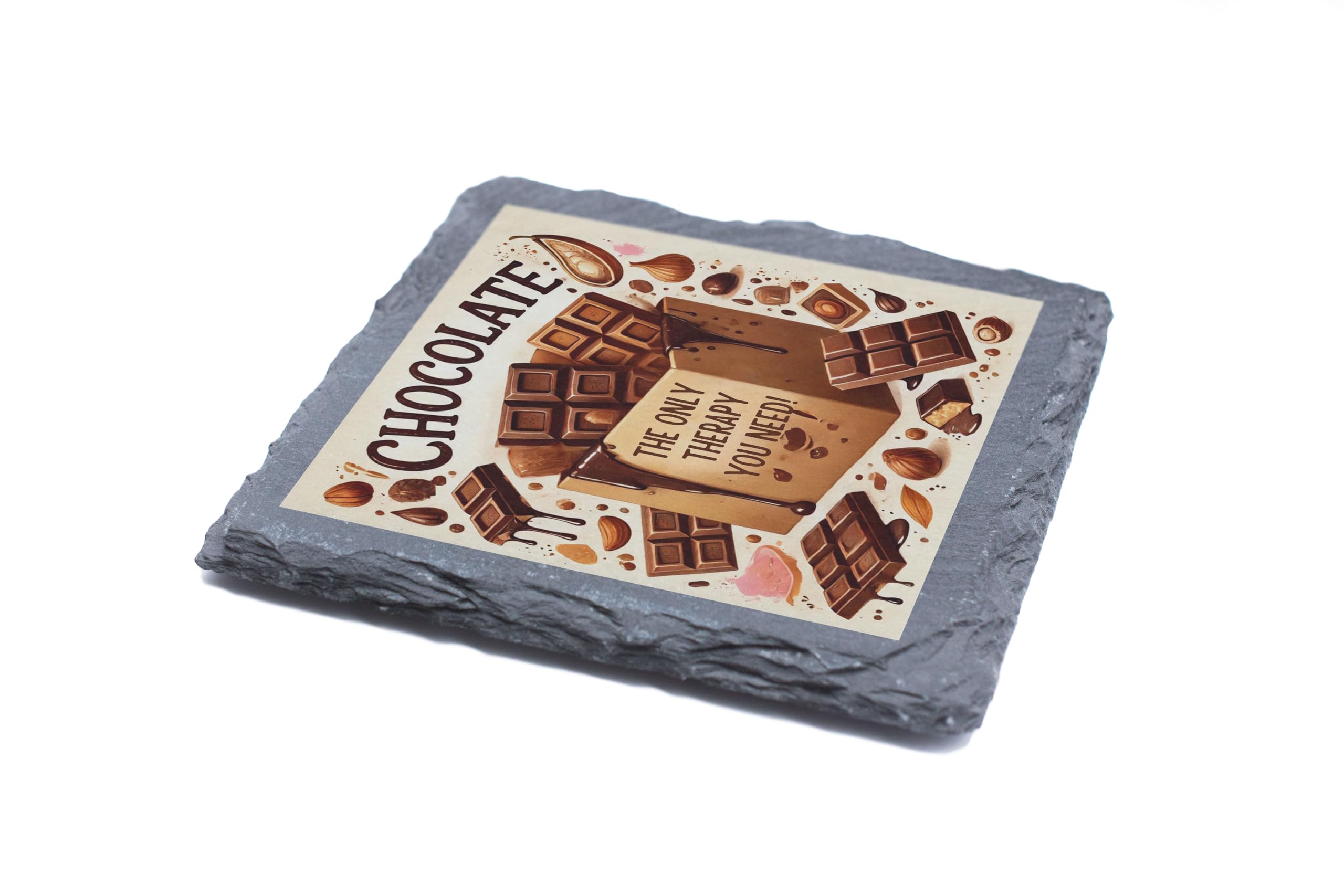 Indulge your love for chocolate and good vibes with this stylish slate coaster. Featuring the fun and relatable slogan “Chocolate: The Only Therapy You Need!” alongside artistic chocolate bar illustrations, this coaster is a perfect mix of humor and utility. Its durable, natural slate construction ensures it will withstand daily use while adding a decorative element to your space. Whether you’re a chocolate lover yourself or looking for a thoughtful gift, this coaster is an ideal choice for any occasion. Make your coffee or snack time more enjoyable with a coaster that celebrates life’s sweetest therapy! Delightful Chocolate-Inspired Art: Features the uplifting phrase “Chocolate: The Only Therapy You Need!” surrounded by rich chocolate-themed illustrations. High-Quality Natural Slate: Constructed with durable and textured slate for a unique, rustic charm and long-lasting use. Versatile and Eye-Catching: Perfect for protecting surfaces from heat and moisture while adding a playful touch to your coffee table or kitchen. Thoughtful Gift for Chocolate Lovers: A great present for friends, family, or colleagues who appreciate humor and chocolate therapy. Eco-Friendly and Stylish: Made from natural materials, combining practicality with a touch of charm for any home decor.