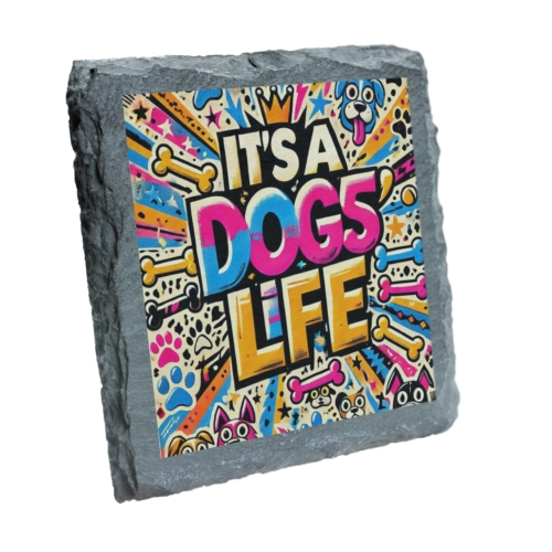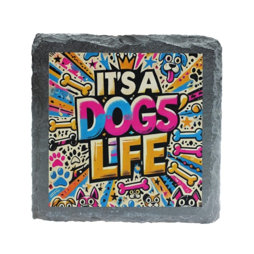 Add a splash of personality to your home with this beautifully crafted slate coaster, featuring the bold and playful “It’s A Dog’s Life” design. Perfect for dog lovers, this vibrant coaster is not only a conversation starter but also a practical addition to your living space. Made from premium-quality slate, the coaster combines durability with a rustic charm that complements any room decor. Its natural slate surface offers excellent heat resistance and effectively protects your furniture from spills and scratches. This coaster makes for a fantastic gift idea for dog enthusiasts, whether for birthdays, holidays, or housewarming occasions. With its easy-to-clean surface and eye-catching design, it?s a delightful blend of style and functionality. Celebrate your love for dogs with this unique and durable slate coaster! Vibrant Design: Features a colorful “It’s A Dog’s Life” artwork, perfect for dog enthusiasts and animal lovers. Premium Material: Made from high-quality slate, offering a rustic yet stylish look that complements any decor. Protective and Durable: Natural slate ensures long-lasting use while protecting surfaces from heat, spills, and scratches. Perfect Gift Idea: Ideal for birthdays, holidays, or as a thoughtful gift for pet owners and dog lovers. Easy Maintenance: Simply wipe clean with a damp cloth for hassle-free upkeep.