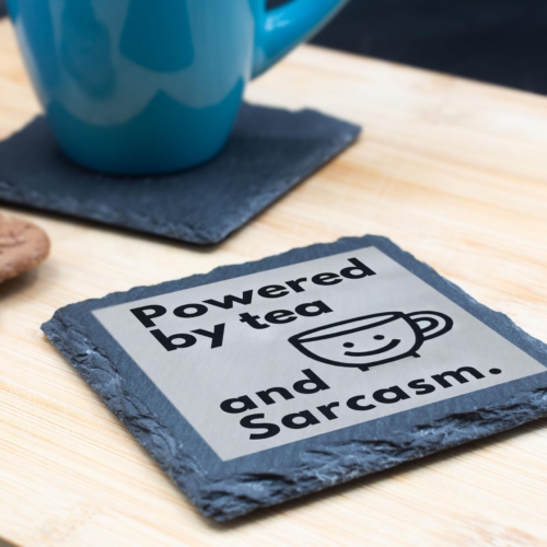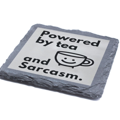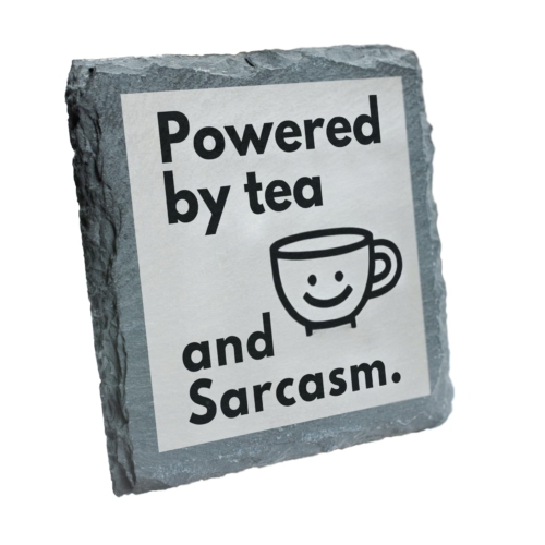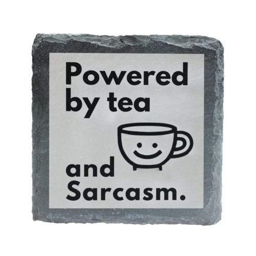 Inject humor into your tea breaks with this quirky slate coaster featuring the hilarious slogan, “Powered by Tea and Sarcasm.” Its playful design and high-quality slate material make it a charming and practical accessory for your home or office. Whether protecting your surfaces or starting conversations, this coaster is a must-have for tea enthusiasts and sarcasm aficionados alike. Perfect for gifting or as a personal treat, it combines wit and utility in one delightful package! Humorous Design: Witty “Powered by Tea and Sarcasm” quote with a cheerful teacup illustration, perfect for sarcasm lovers. Premium Slate Material: Made from durable, natural slate with a rustic finish for a stylish yet functional look. Surface Protection: Keeps your tabletops safe from heat, moisture, and drink spills with its sturdy construction. Perfect Gift Idea: Ideal for tea lovers, colleagues, or anyone with a sharp sense of humor. Versatile Use: Great for home, office, or gifting occasions, adding a touch of wit to every tea break.