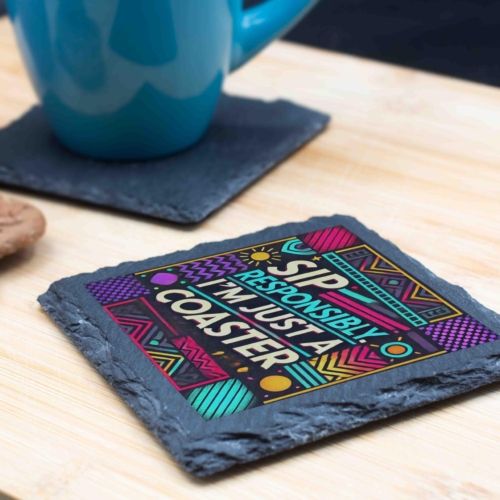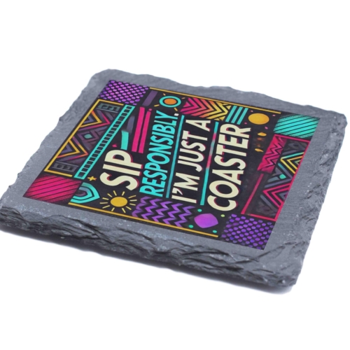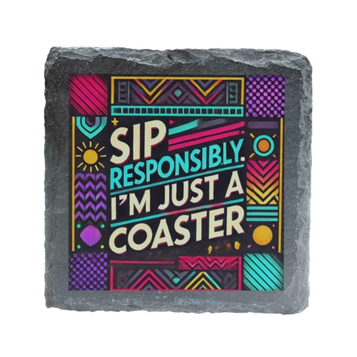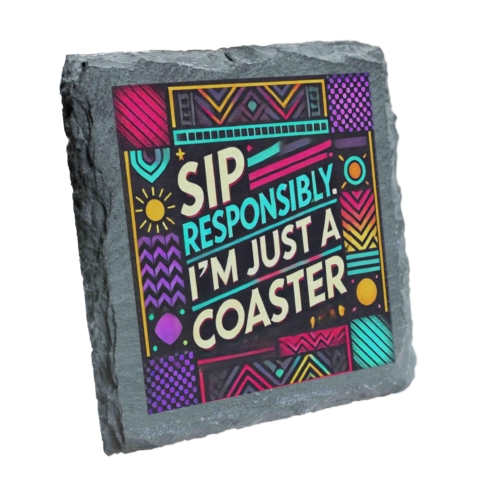 Brighten up your table decor with this amusing slate coaster featuring the phrase “Sip Responsibly, I’m Just a Coaster.” Its bold geometric design with vibrant, playful colors makes it a standout addition to any setting. Crafted from premium slate, this coaster is both durable and stylish, ensuring your furniture remains safe from drink rings and spills. Its modern aesthetic and witty message make it a fantastic gift for friends, family, or colleagues who love a good laugh and stylish homeware. Ideal for home, office, or bar use, this coaster is as practical as it is fun! Humorous and Fun: Features the quirky phrase “Sip Responsibly, I’m Just a Coaster.” Vivid Geometric Design: Eye-catching pattern with vibrant colors for a modern look. Natural Slate Material: Durable and stylish slate construction ensures longevity. Protects Your Surfaces: Prevents drink rings, spills, and stains on tables and countertops. Perfect Gift Option: Great for housewarmings, birthdays, or as a fun office accessory.